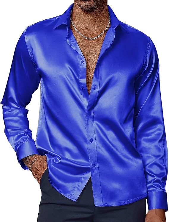 2025 크로스 보더 아마존 남성 여름 신작 새틴 모조 실크 긴팔 셔츠 남성 여름 캐주얼 탑스토어 가기