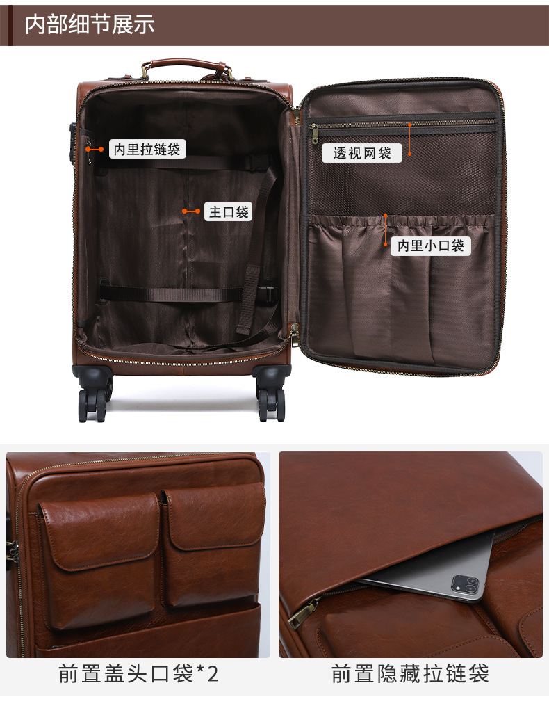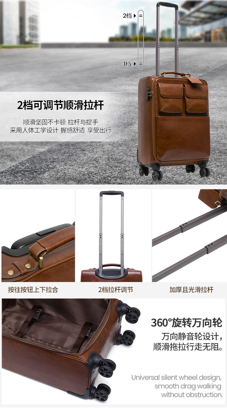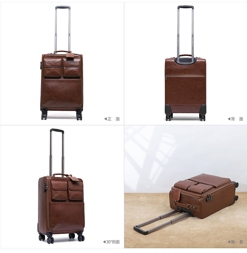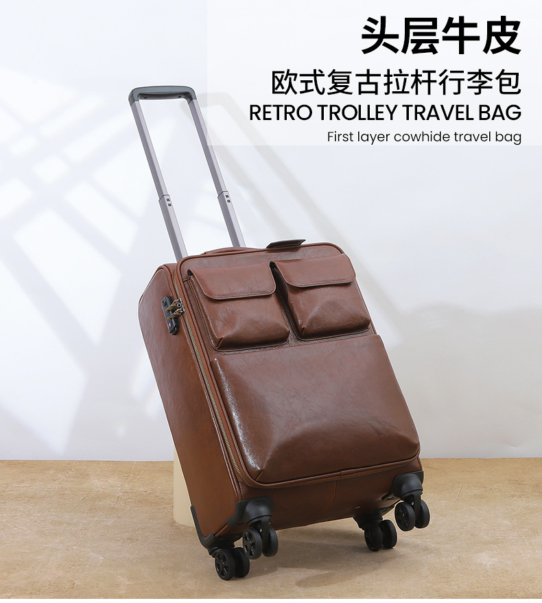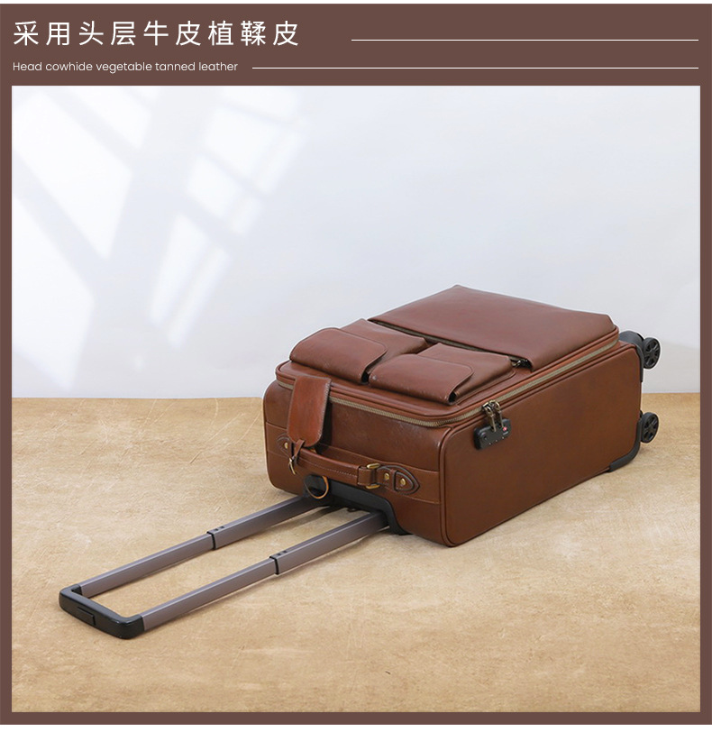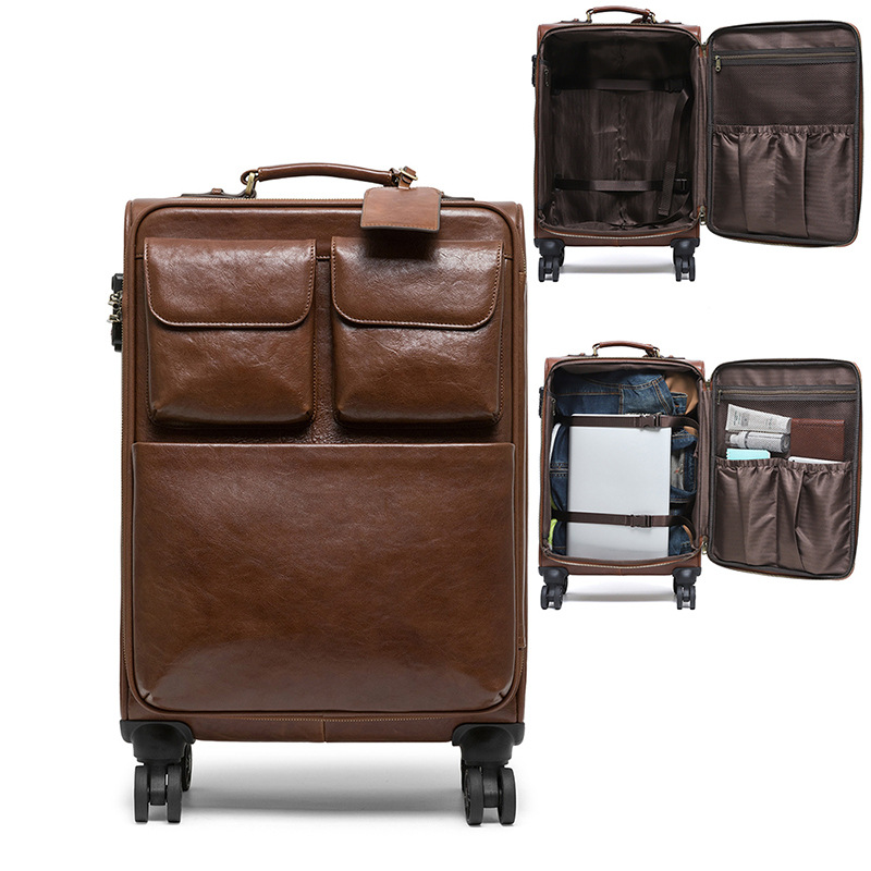 맞춤형 식물성 무두질 가죽 여행 가방, 대용량, 전체 가죽, 복고풍 트롤리 케이스, 방향 휠 비즈니스 여행 가방 가공스토어 가기