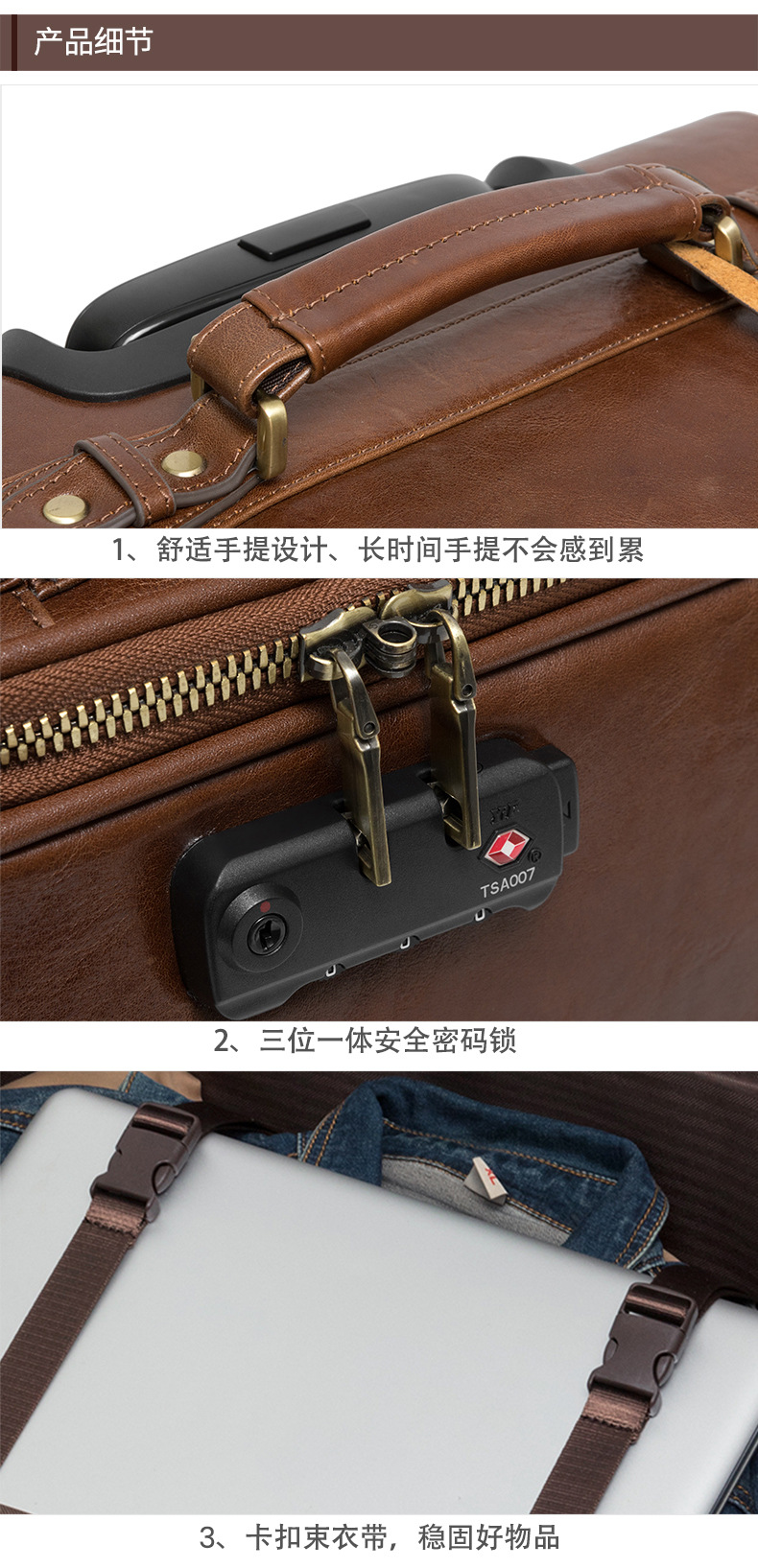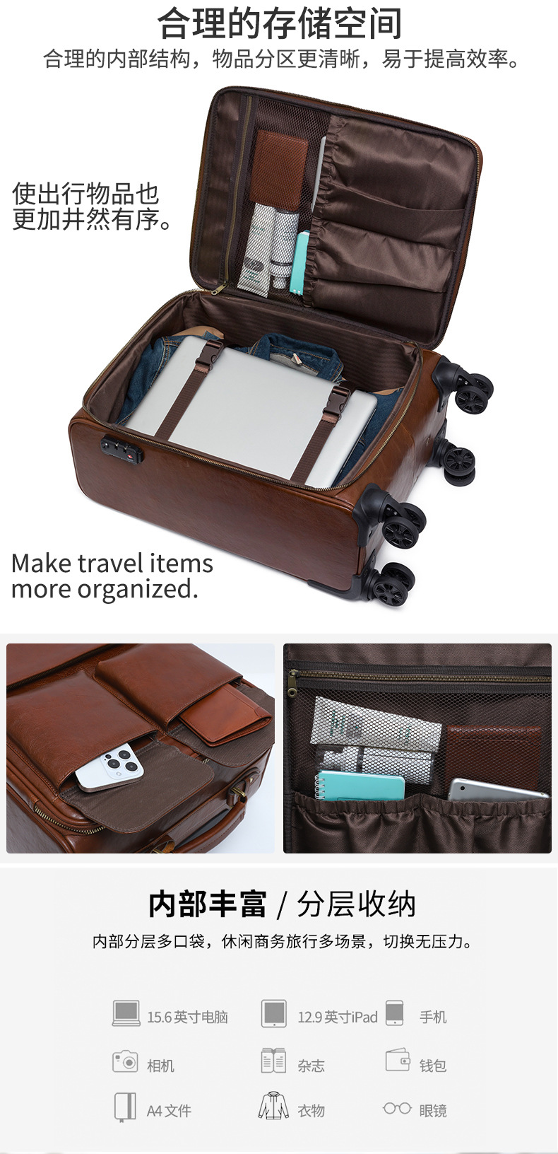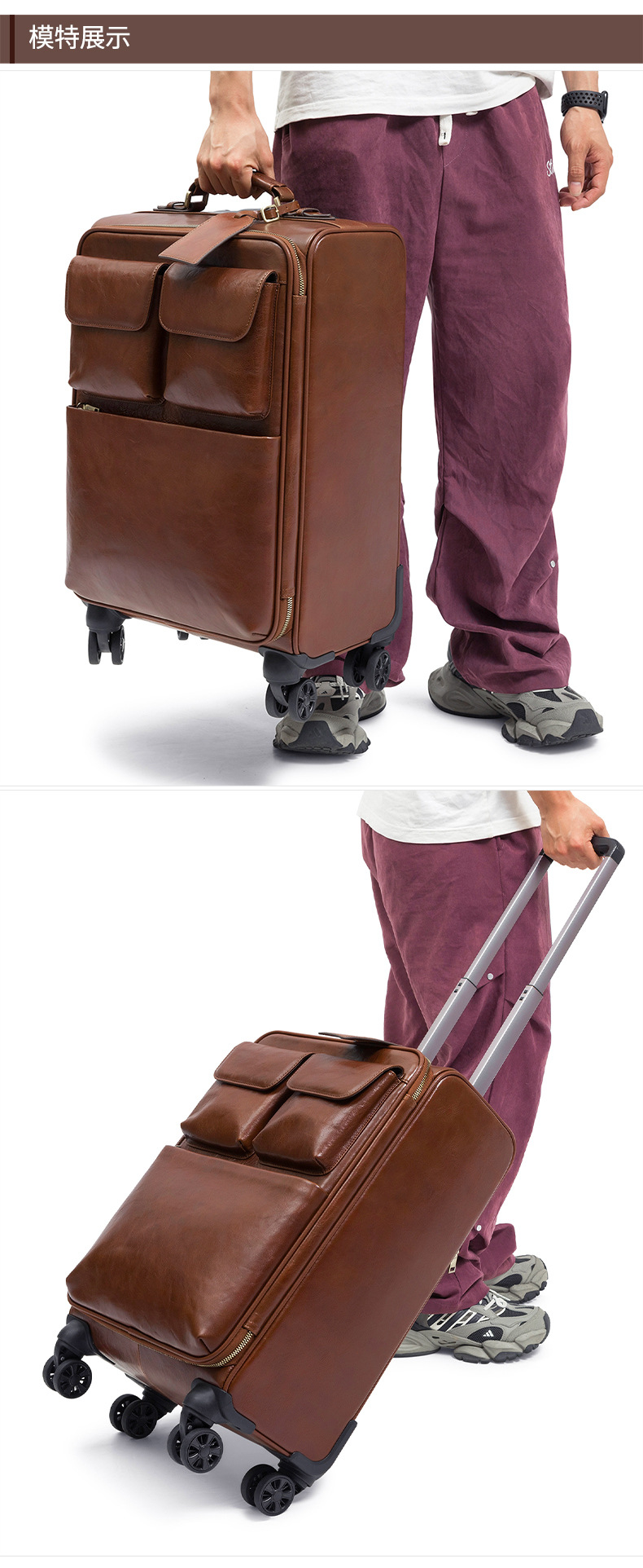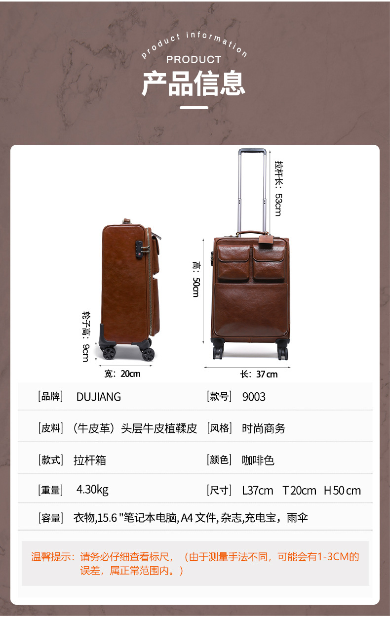 맞춤형 식물성 무두질 가죽 여행 가방, 대용량, 전체 가죽, 복고풍 트롤리 케이스, 방향 휠 비즈니스 여행 가방 가공스토어 가기