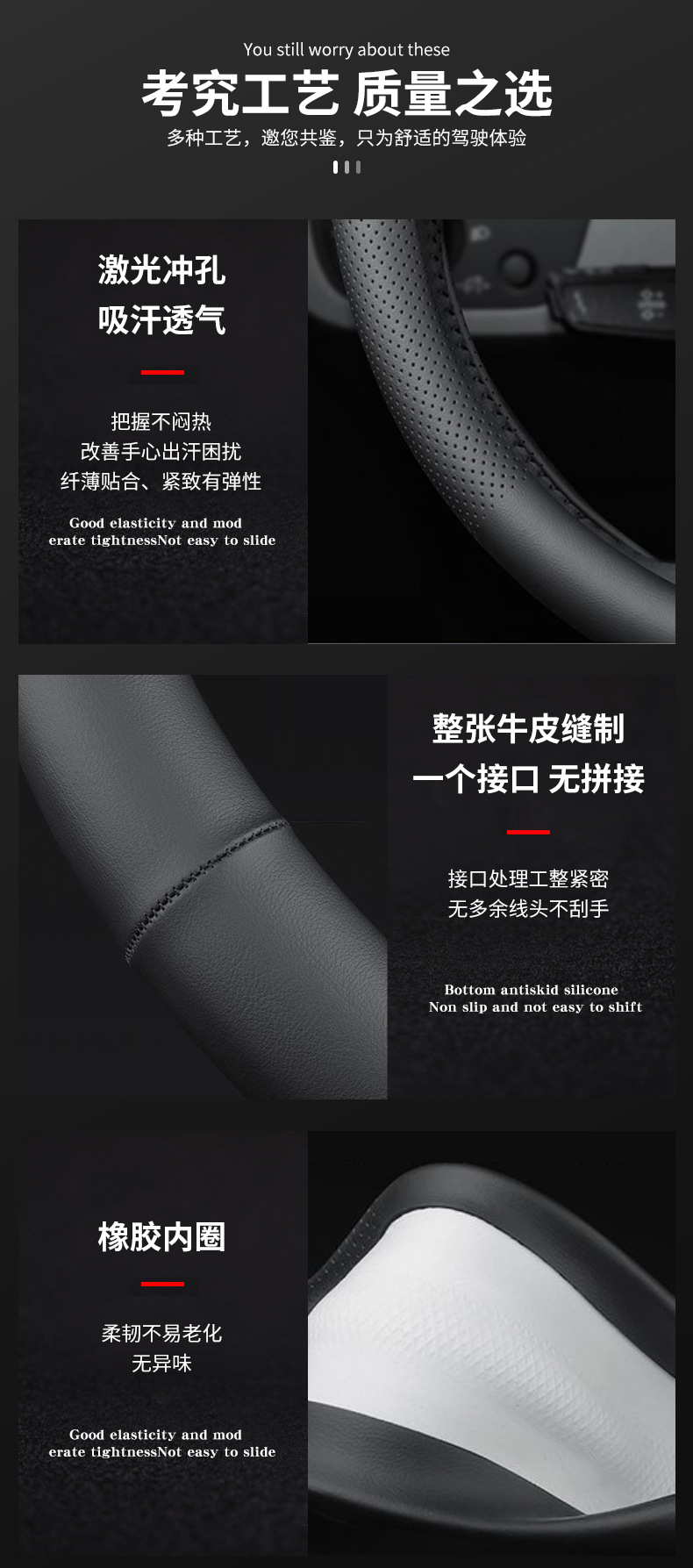 국경 간 스티어링 휠 커버, 천공 및 통기성 스티어링 휠 커버, 사계절 범용 미끄럼 방지 파나피 자동차 스티어링 휠 커버