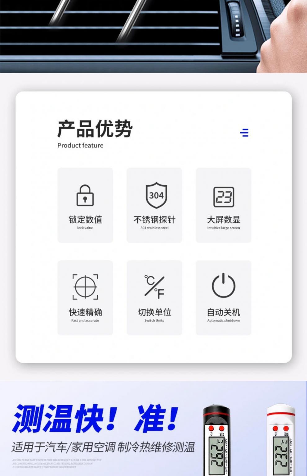 ll 자동차 냉장고 및 냉동고 가정용 에어컨 공기 배출구 프로브 온도계 수리 냉동 온도계 측정스토어 가기