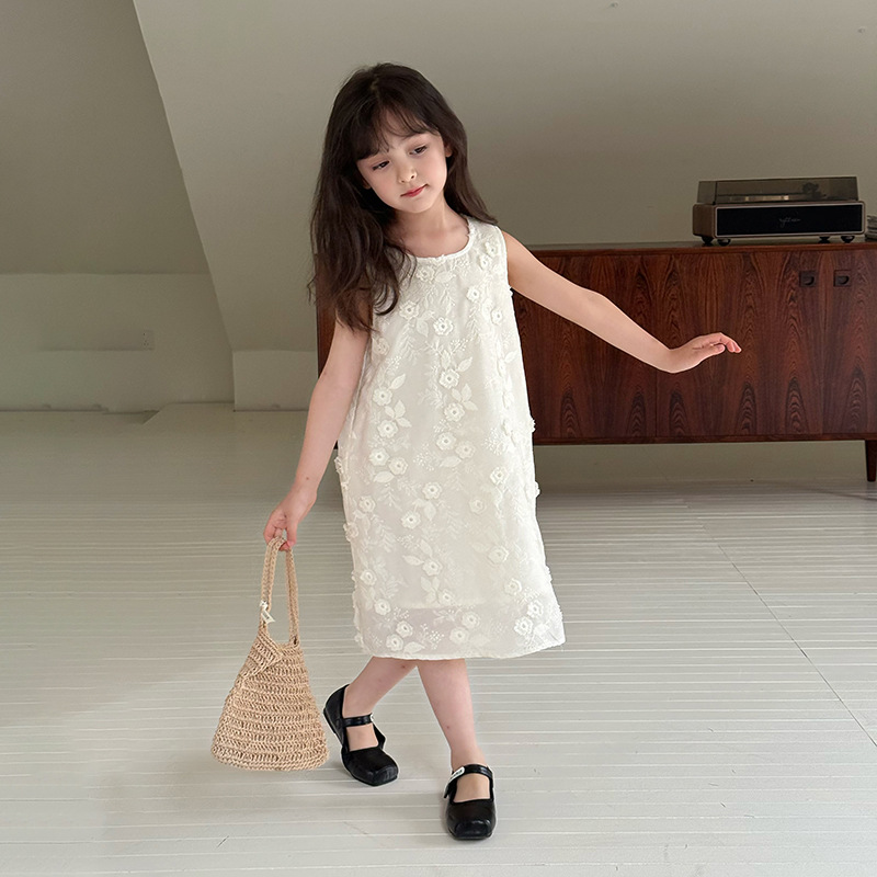 Aimo Beibei 여자 유행 공주 드레스 여름 어린이 디자인 절묘한 입체 크림 꽃 조끼 드레스스토어 가기