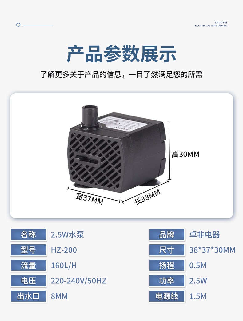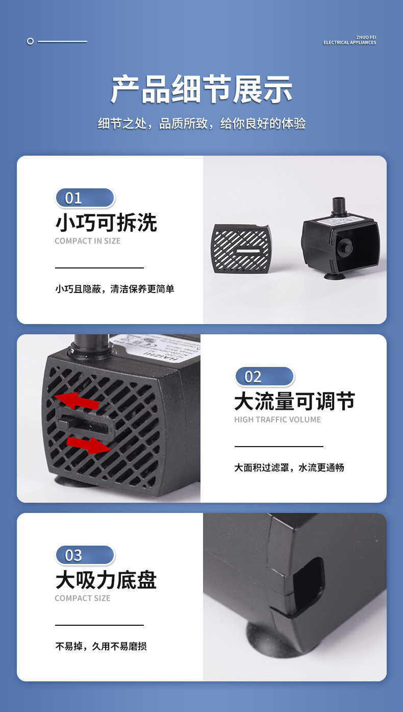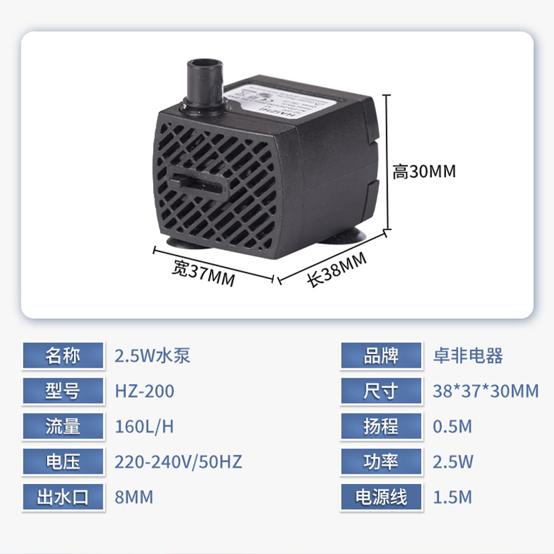 스팟 도매 유럽 표준 미국 표준 2.5W 수중 펌프 다기능 물고기 탱크 수중 펌프 애완 동물 워터 디스펜서 미니 워터 펌프