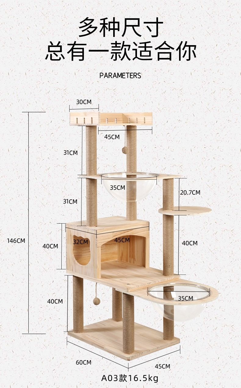 • 모델 A03은 모두 단단한 나무로 만들어졌으며(고양이 놀리는 막대기와 함께 제공) 매우 안정적입니다.