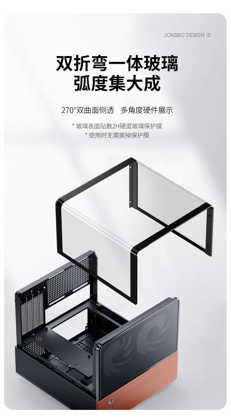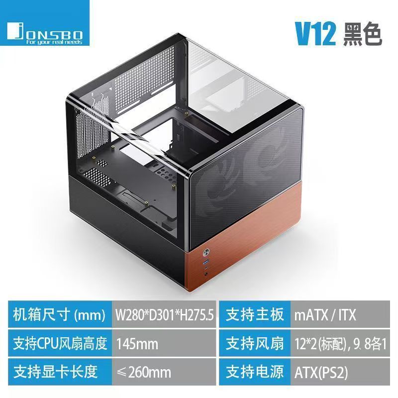 Qiaosibo V12 쌍곡면 유리 M-ATX 섀시 상단 및 하단 구조 데스크탑 바다 전망 룸 컴퓨터 MINI 측면 투명