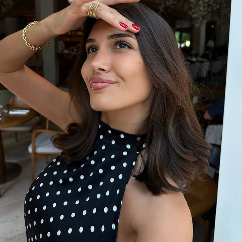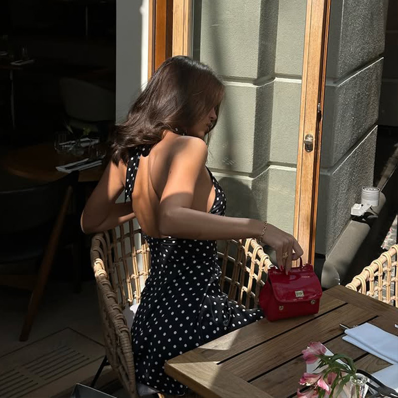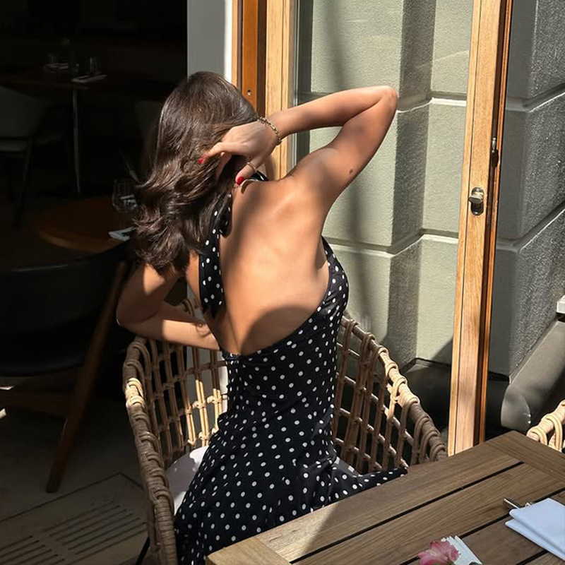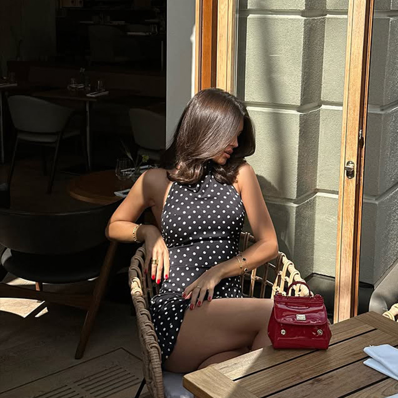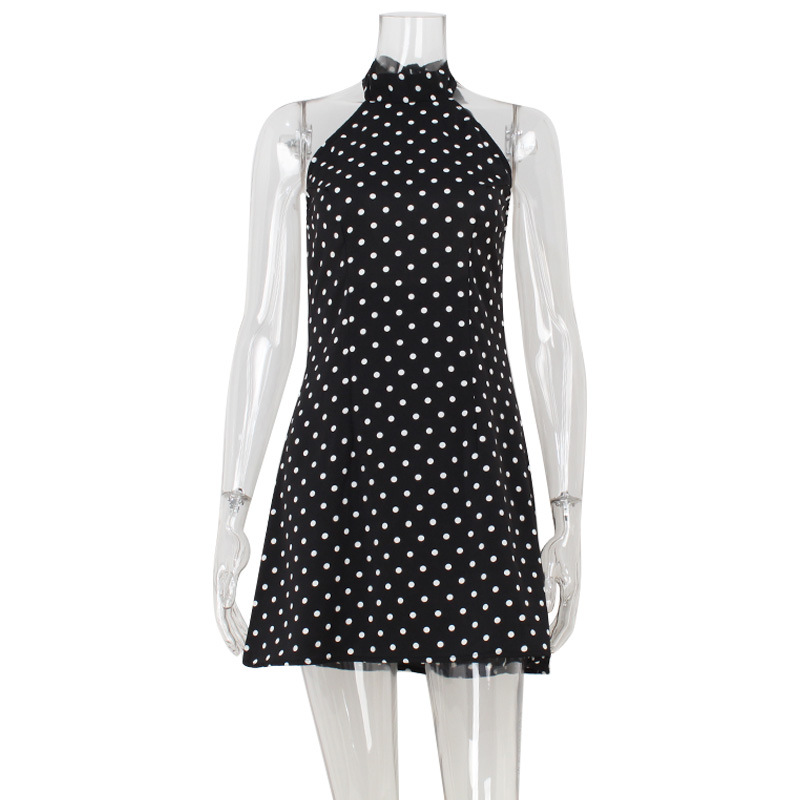 크로스보더 스타일 프렌치 홀터넥 백리스 슬림 패션 폴카 도트 프린트 섹시 퓨어 러스트 유럽과 미국 스타일의 A라인 드레스스토어 가기