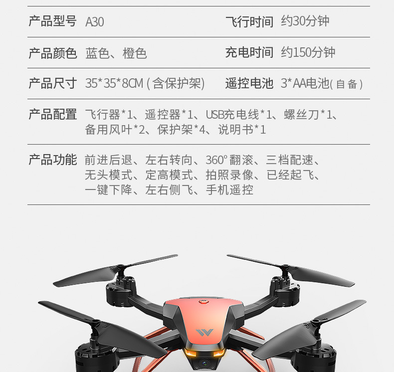 • A30 오렌지(항공 버전) 30분의 긴 배터리 수명