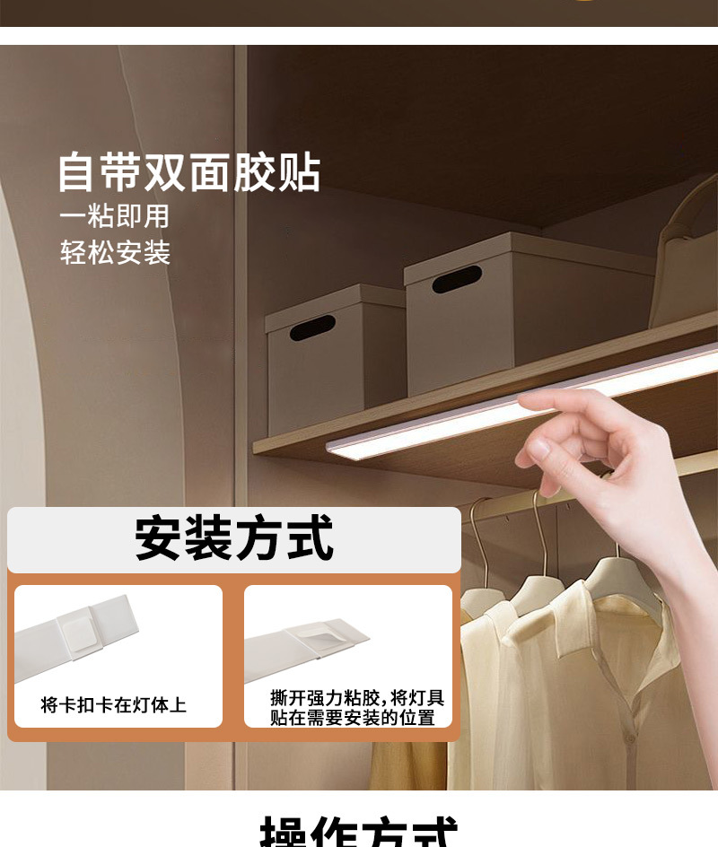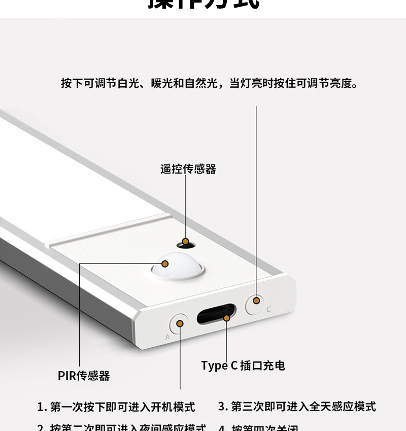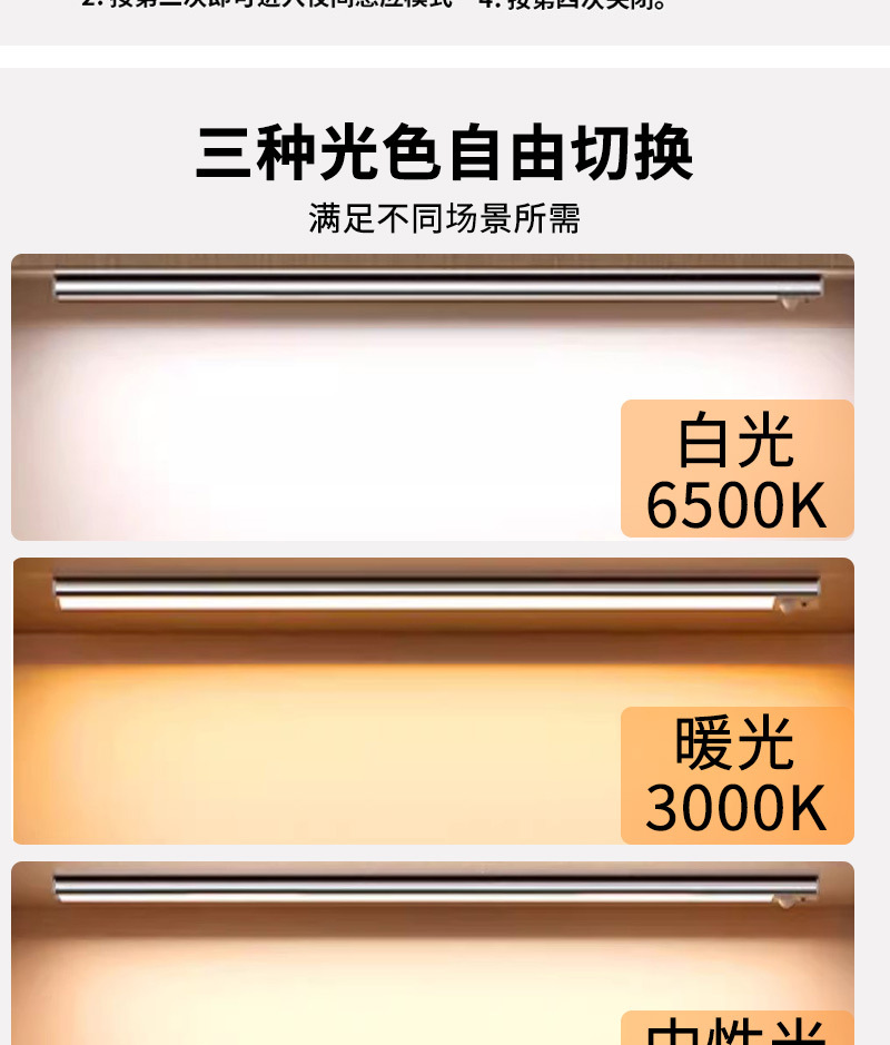 원격 제어 센서 램프 인체 센서 램프 3색 디밍 야간 조명 USB 충전식 무선 자기 캐비닛 램프