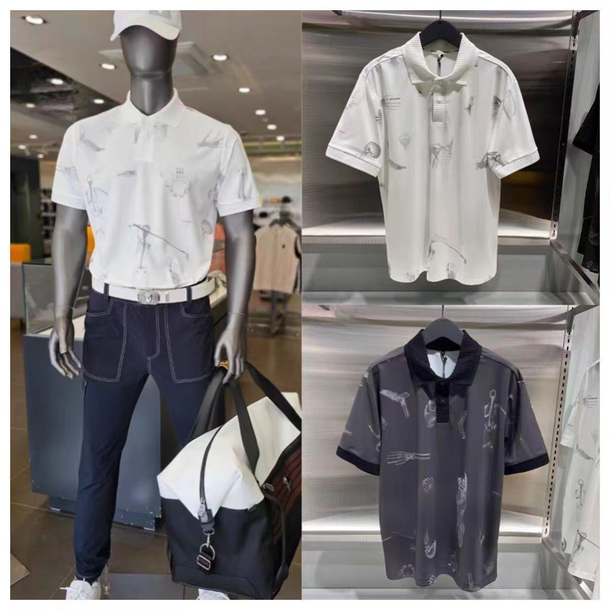 골프웨어 25 여름 신작 남성용 편안한 속건성 캐주얼 라펠 자외선 차단제 프린트 반팔 야외 스포츠스토어 가기
