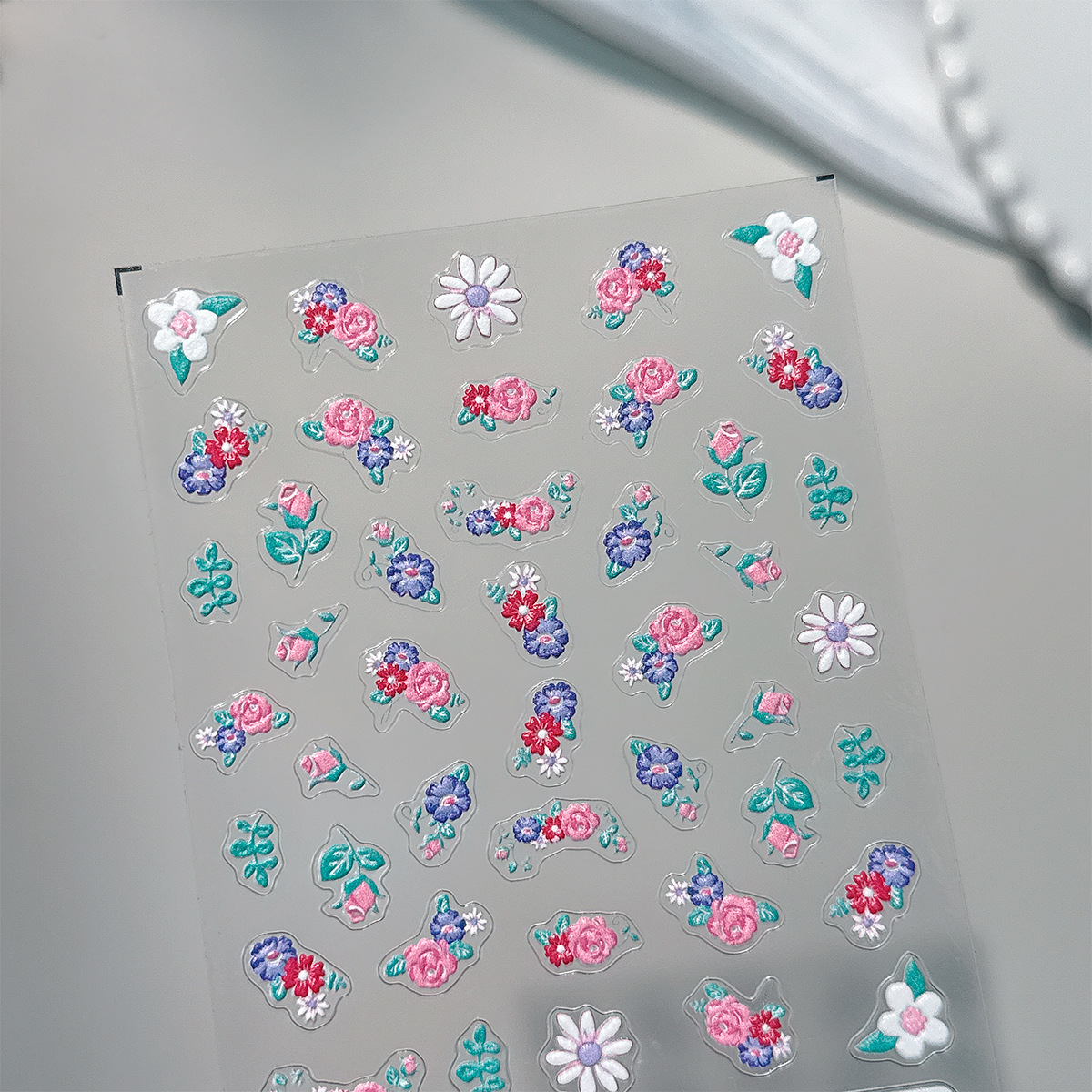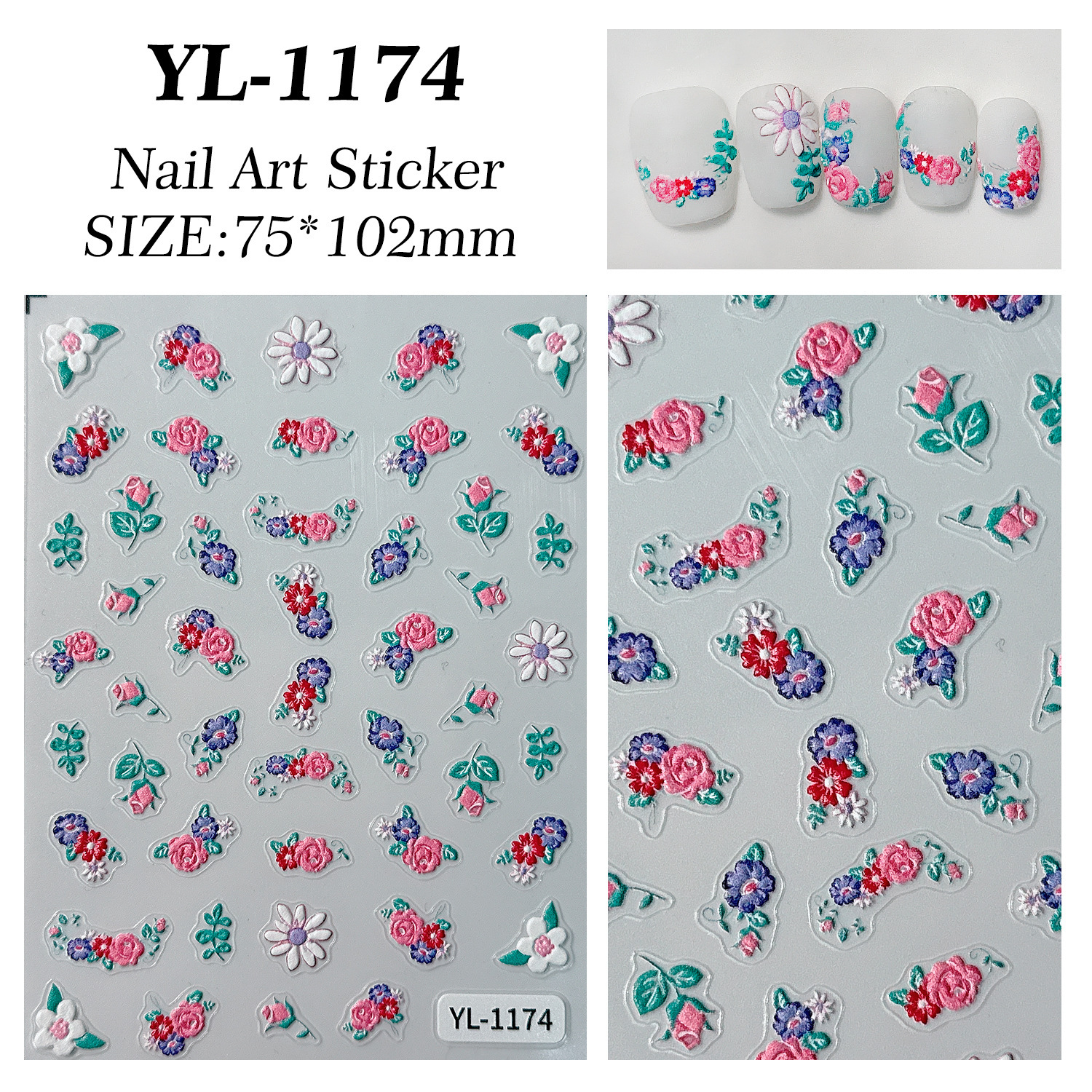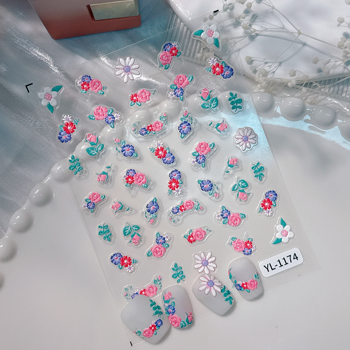 다채로운 유화 꽃 네일 스티커 5D 양각 절묘한 입체 신선한 꽃 네일 아트 스티커 쥬얼리 YL 스타일