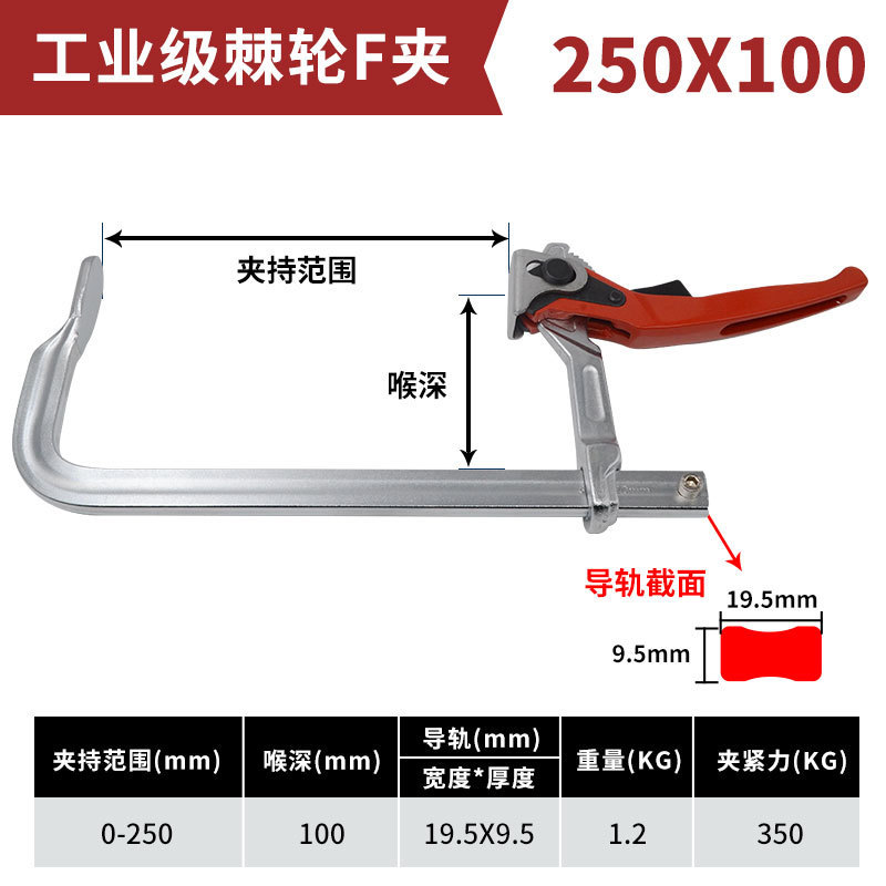 • 래칫 250X100 가이드 레일 19.5x9.5 클램핑력 350kg
