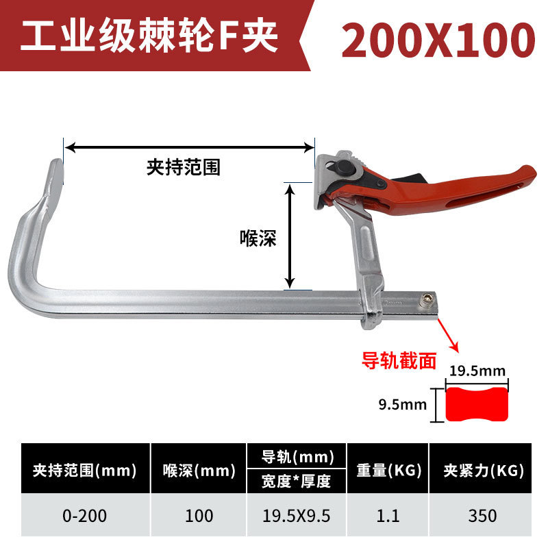 • 래칫 200X100 가이드 레일 19.5x9.5 클램핑력 350kg