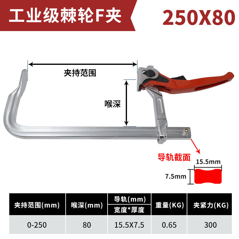 • 래칫 250X80 가이드 레일 15.5x7.5 클램핑력 300kg