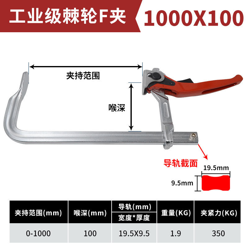 • 래칫 1000X100 가이드 레일 19.5x9.5 클램핑력 350kg