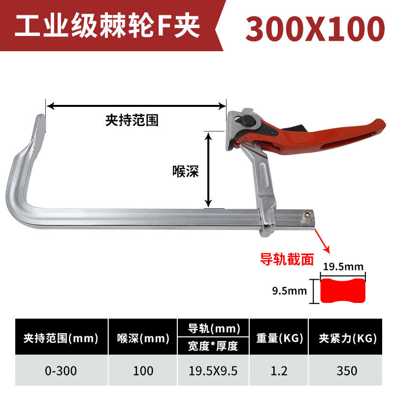 • 래칫 300X100 가이드 레일 19.5x9.5 클램핑력 350kg