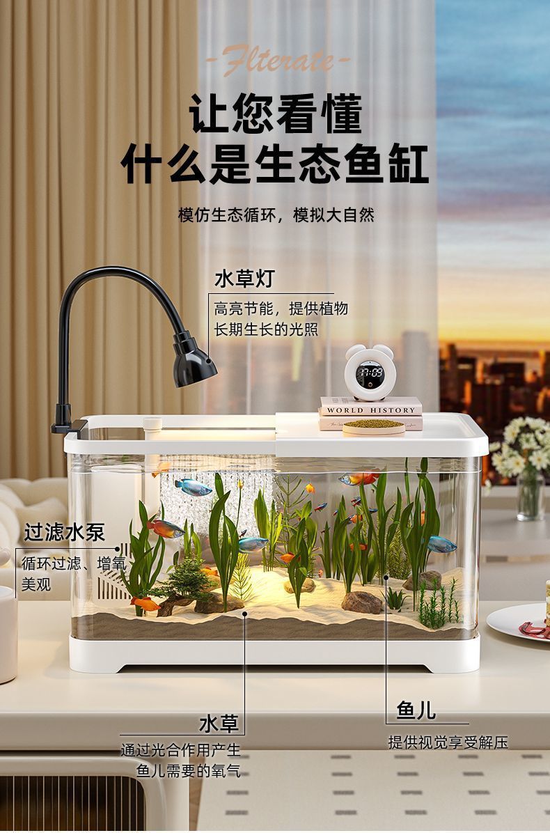 Kuoting 음압 수조 중소형 금붕어 수조 생태 조경 가정용 플라스틱 거실 데스크탑 수족관스토어 가기