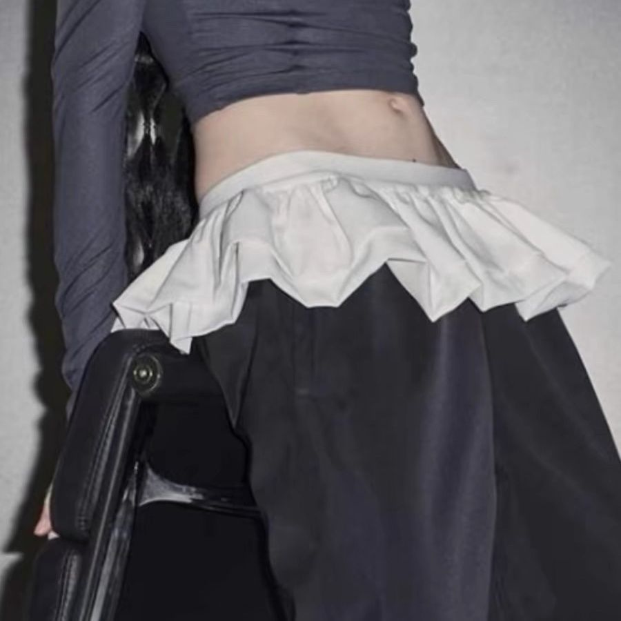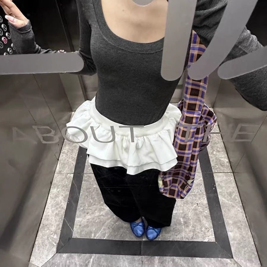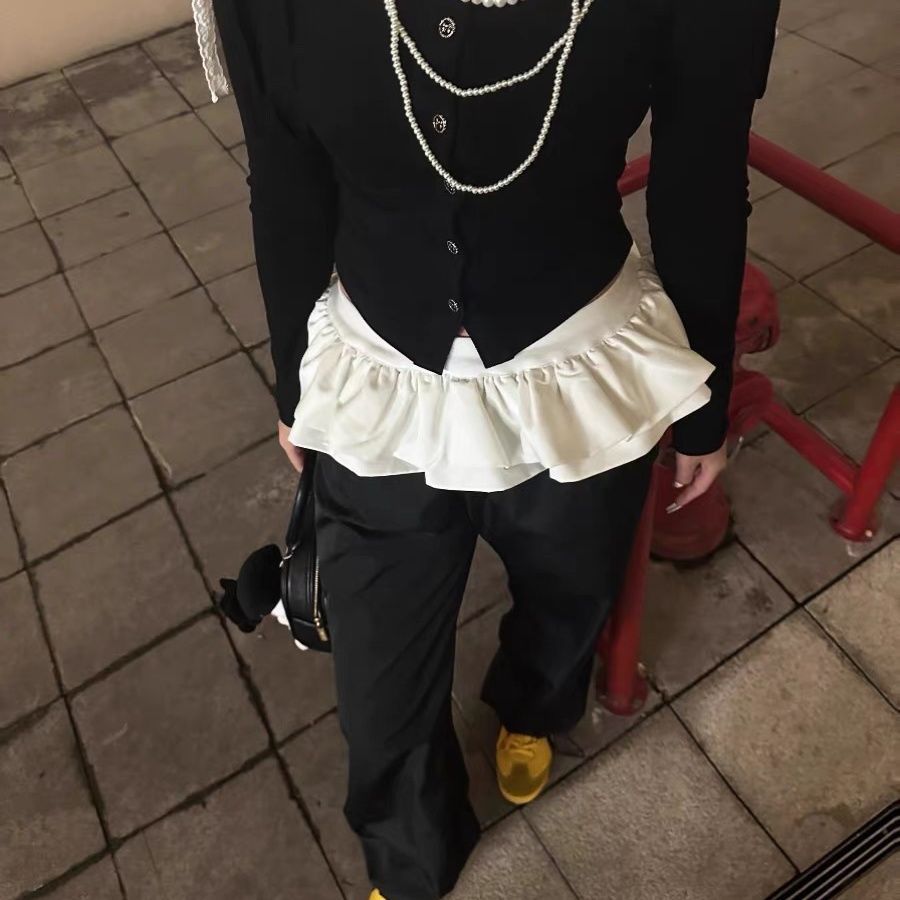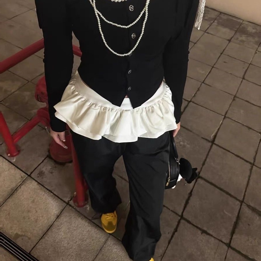 스포티한 발레 스타일의 화이트 하이웨이스트 요정 스커트 디자인, 순수한 욕망과 노출 방지, 더블 레이어 한국 스타일 레이스 케이크스토어 가기
