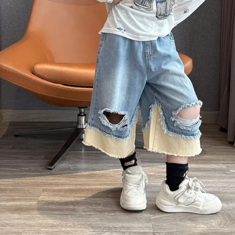 • 디지털 자외선 차단 의류 + 노란색 스티치 찢어진 바지