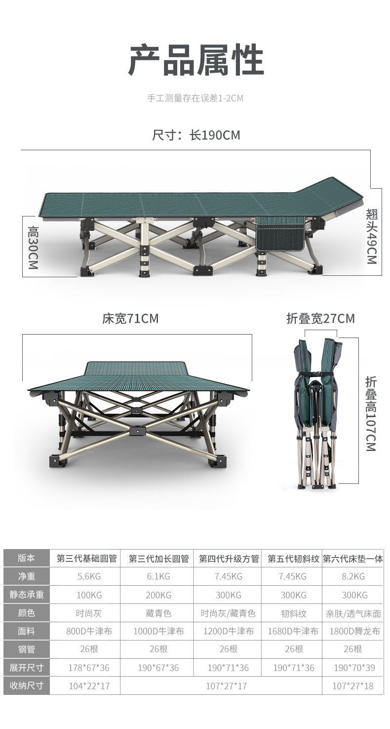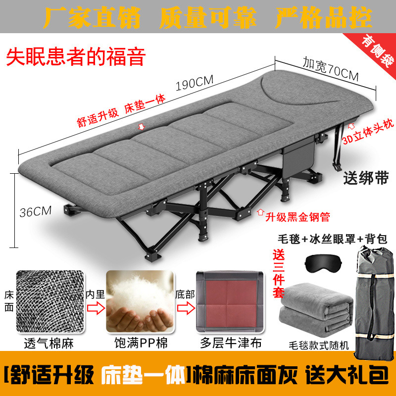 1인용 접이식 침대, 두꺼운 낮잠용 유아용 침대, 사무실 낮잠용품, 강화 캠프 침대, 매우 두꺼운 동반 침대스토어 가기