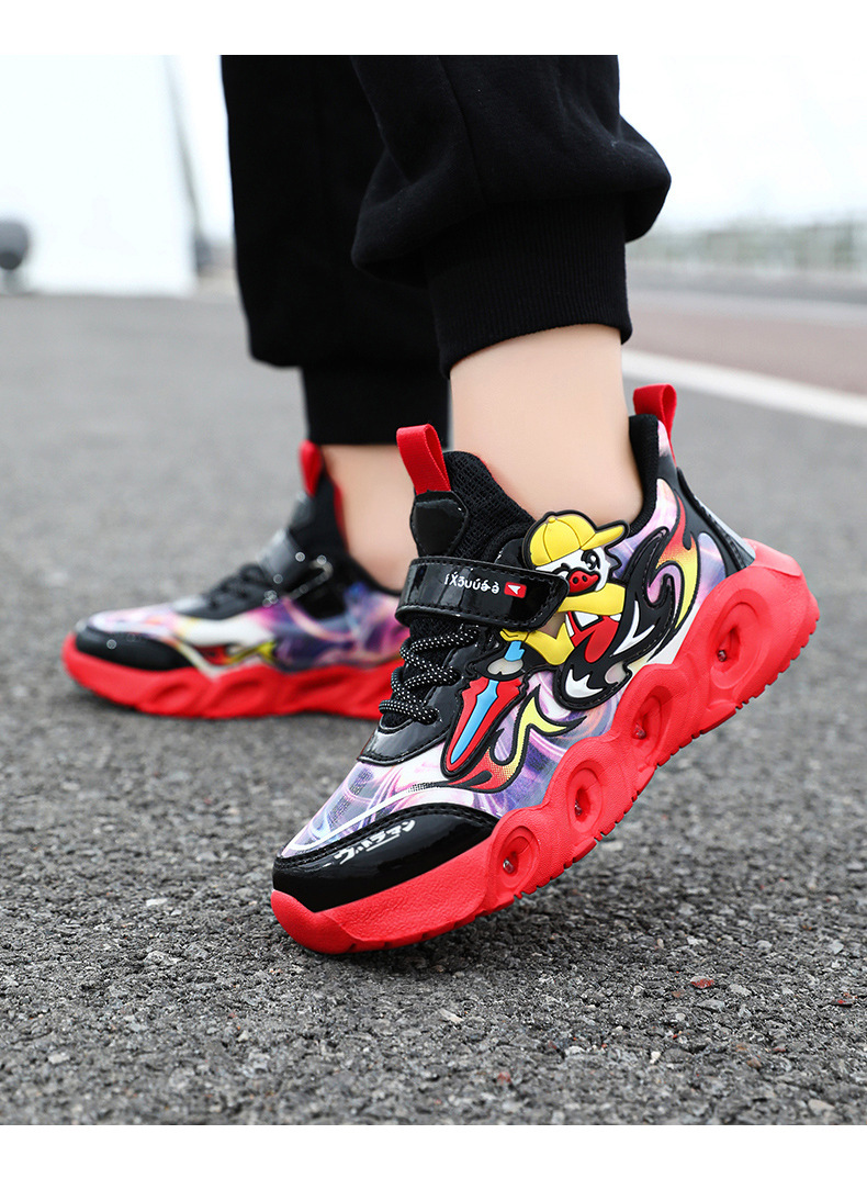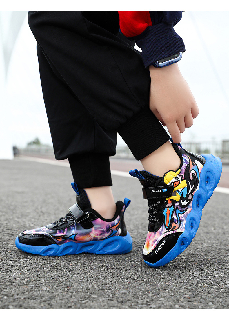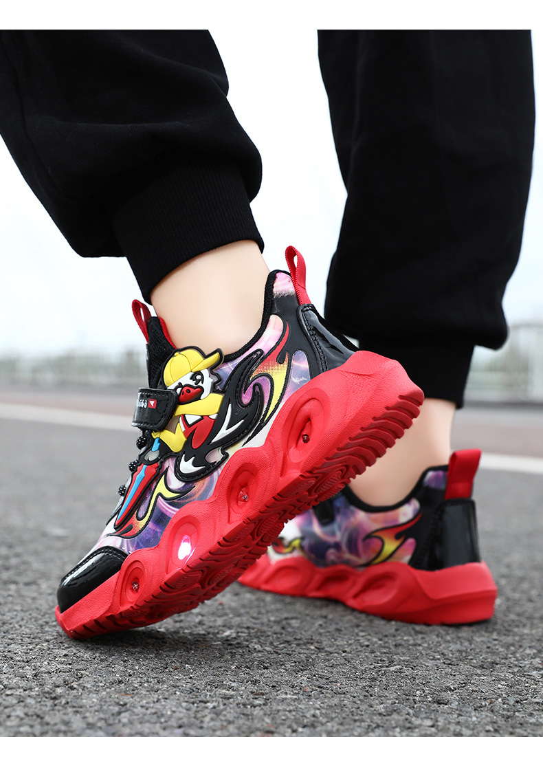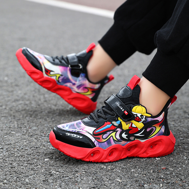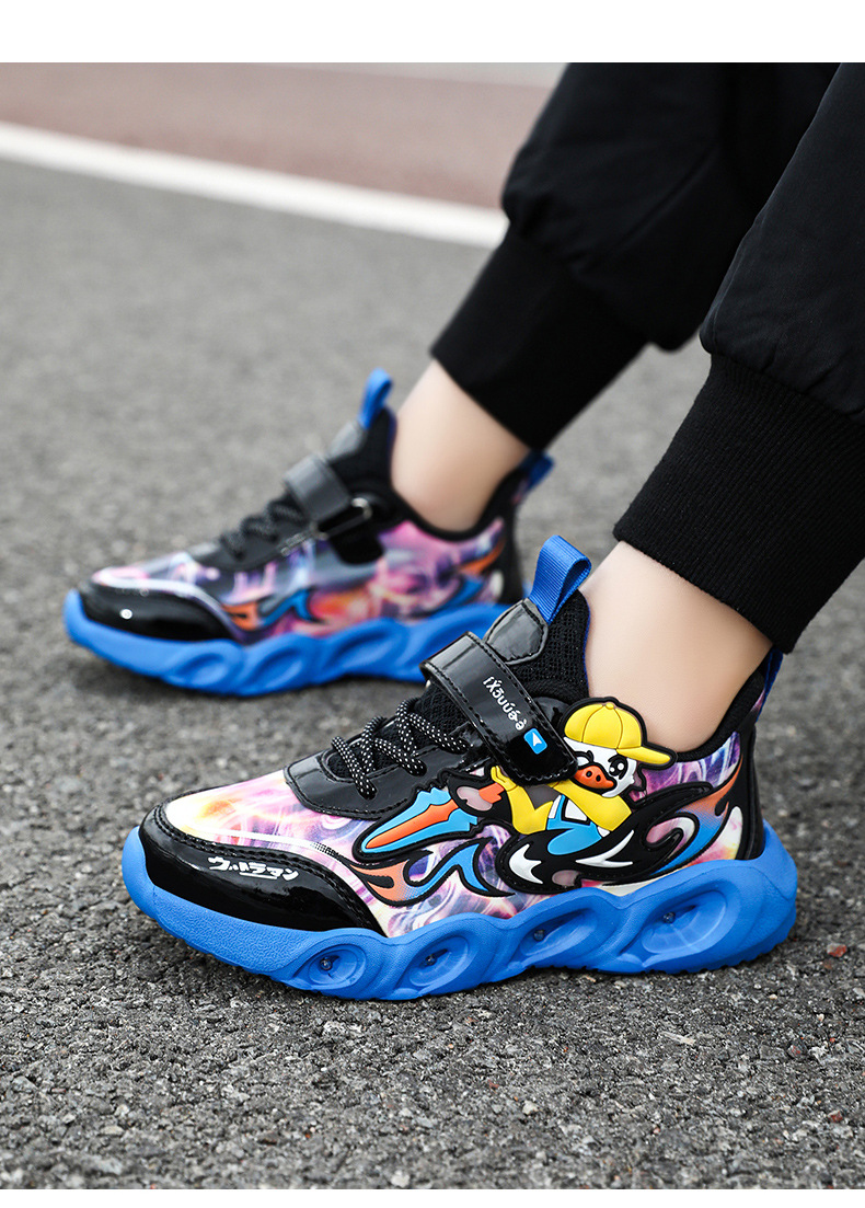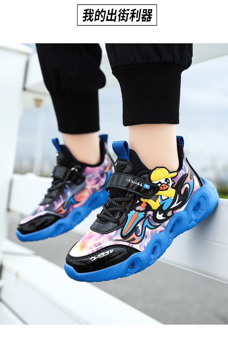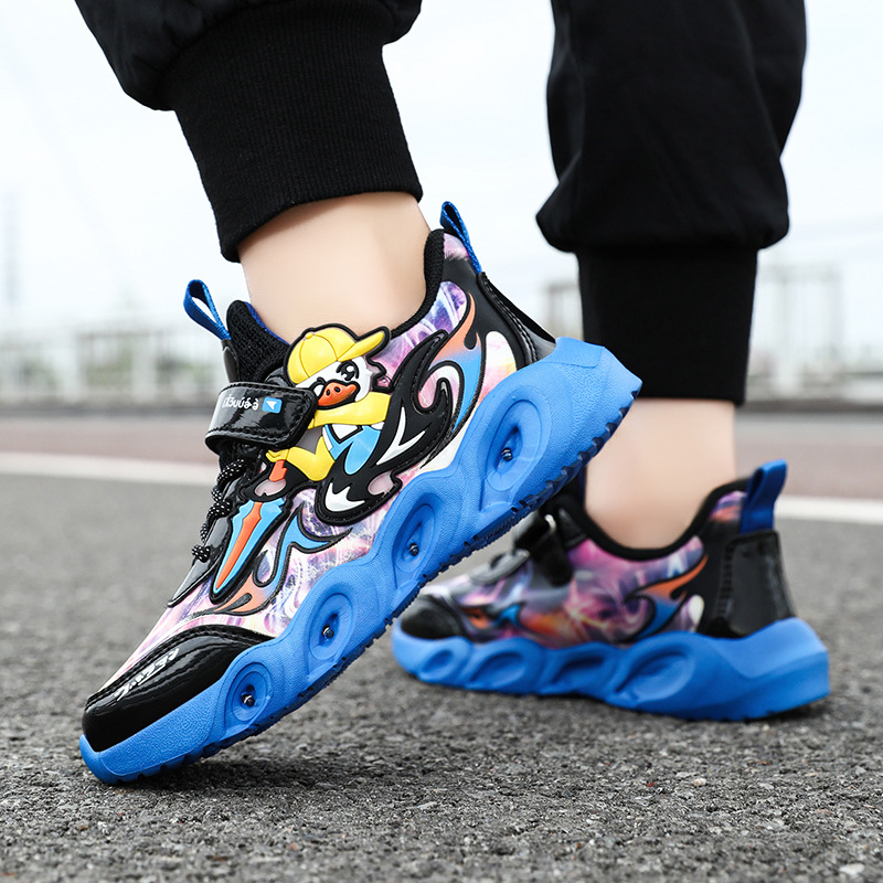 라이트 작은 노란색 오리 소년 신발 2025 봄과 가을 새로운 어린이 스포츠 신발 가죽 미끄럼 방지 중소 어린이 달리기스토어 가기