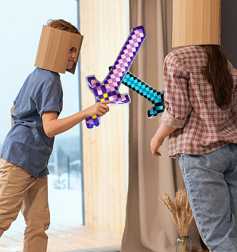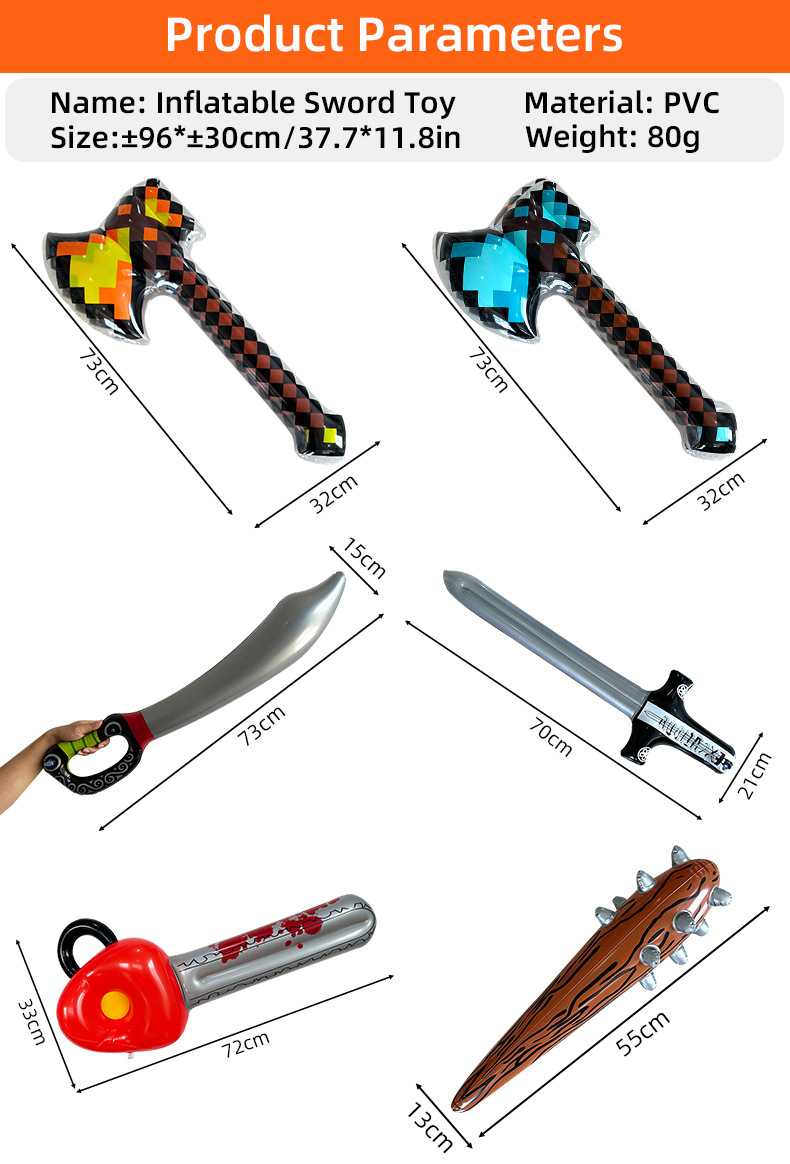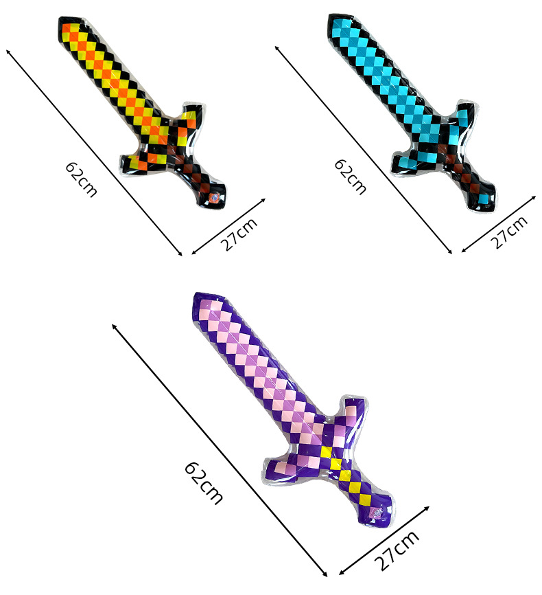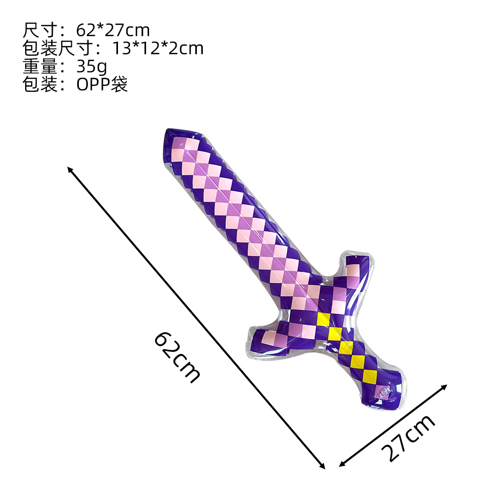 크로스보더 풍선 장난감 풍선 모형 무기 PVC 모자이크 픽셀 무기 격자무늬 검 풍선 도끼