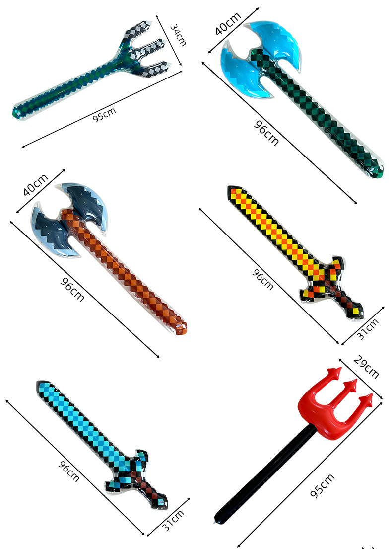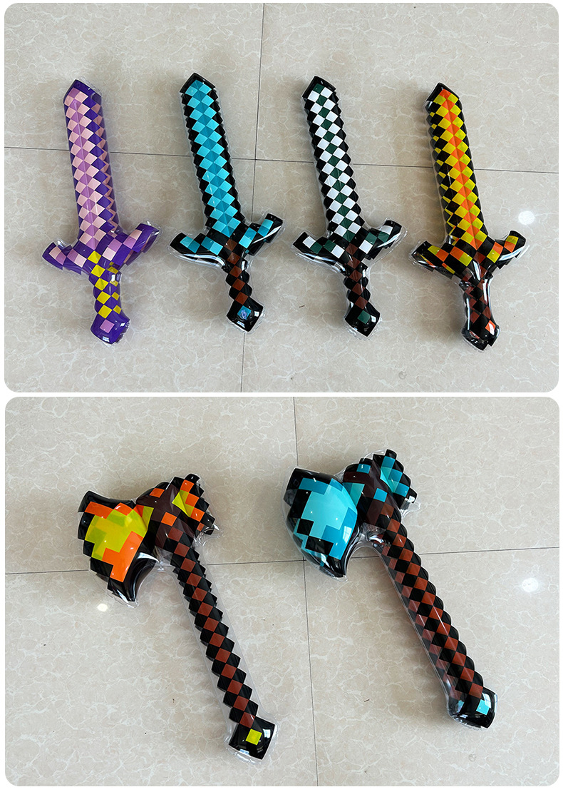 크로스보더 풍선 장난감 풍선 모형 무기 PVC 모자이크 픽셀 무기 격자무늬 검 풍선 도끼스토어 가기