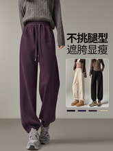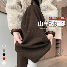 羊羔绒阔腿裤女冬季加绒加厚新款运动裤休闲雪尼尔直筒窄版卫裤子