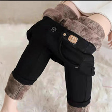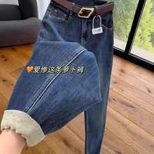 羊羔绒加厚牛仔裤女松紧腰大码小脚裤胖mm显瘦加绒冬季弹力铅笔裤