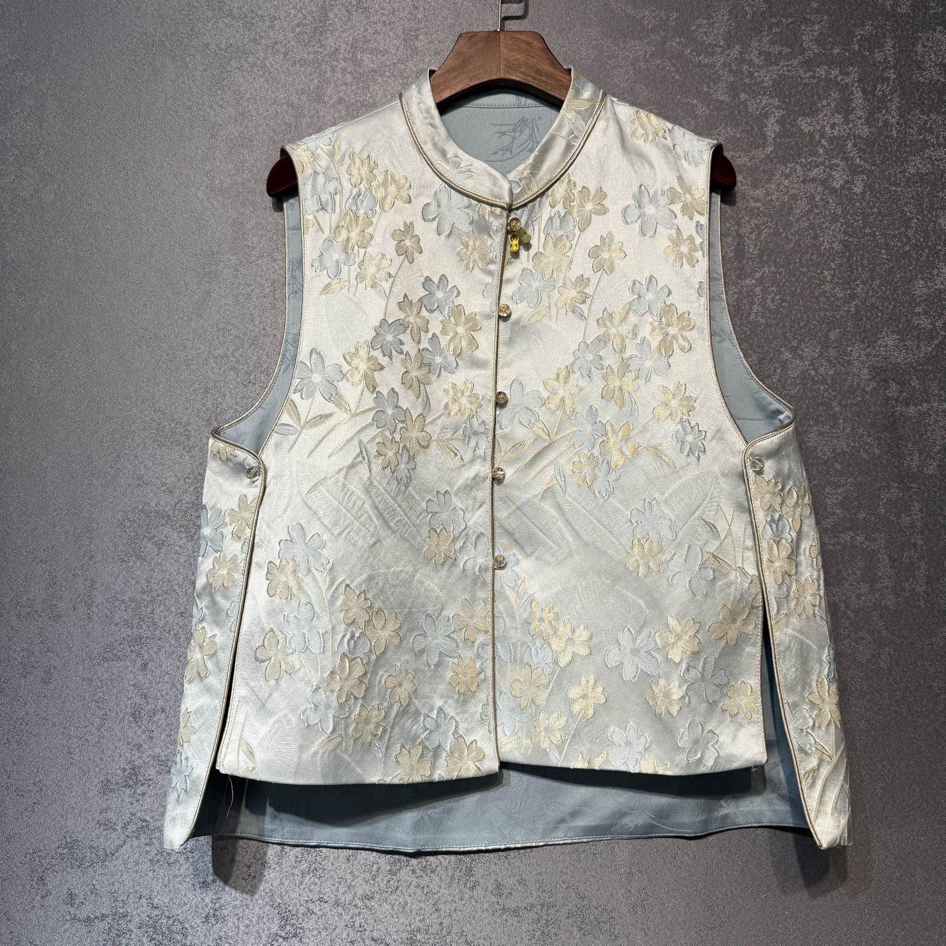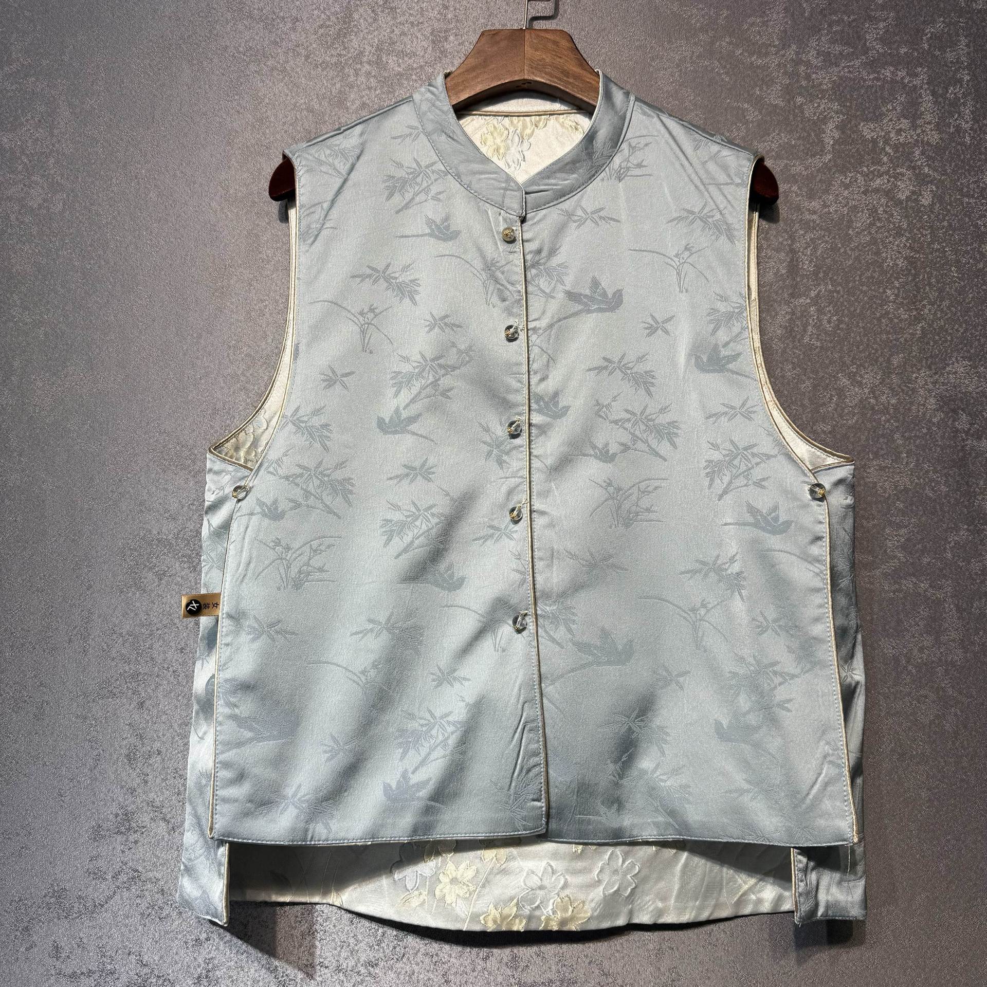 여성을위한 새로운 중국 스타일 국가 스타일 실크 브로케이드 자카드 조끼 2025 봄 새로운 패션 양면 양면 조끼 탑