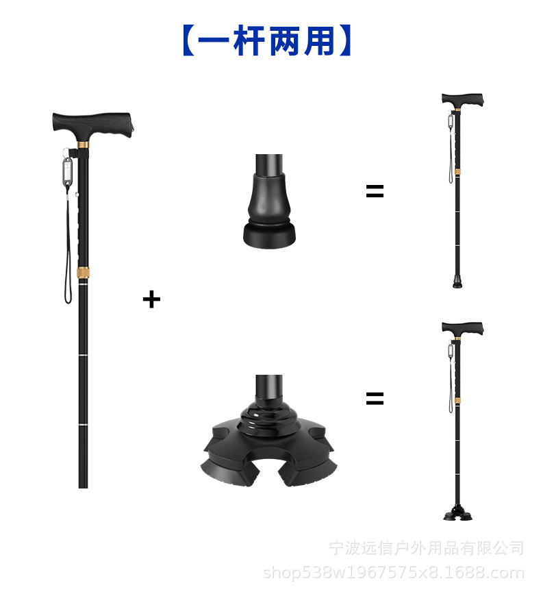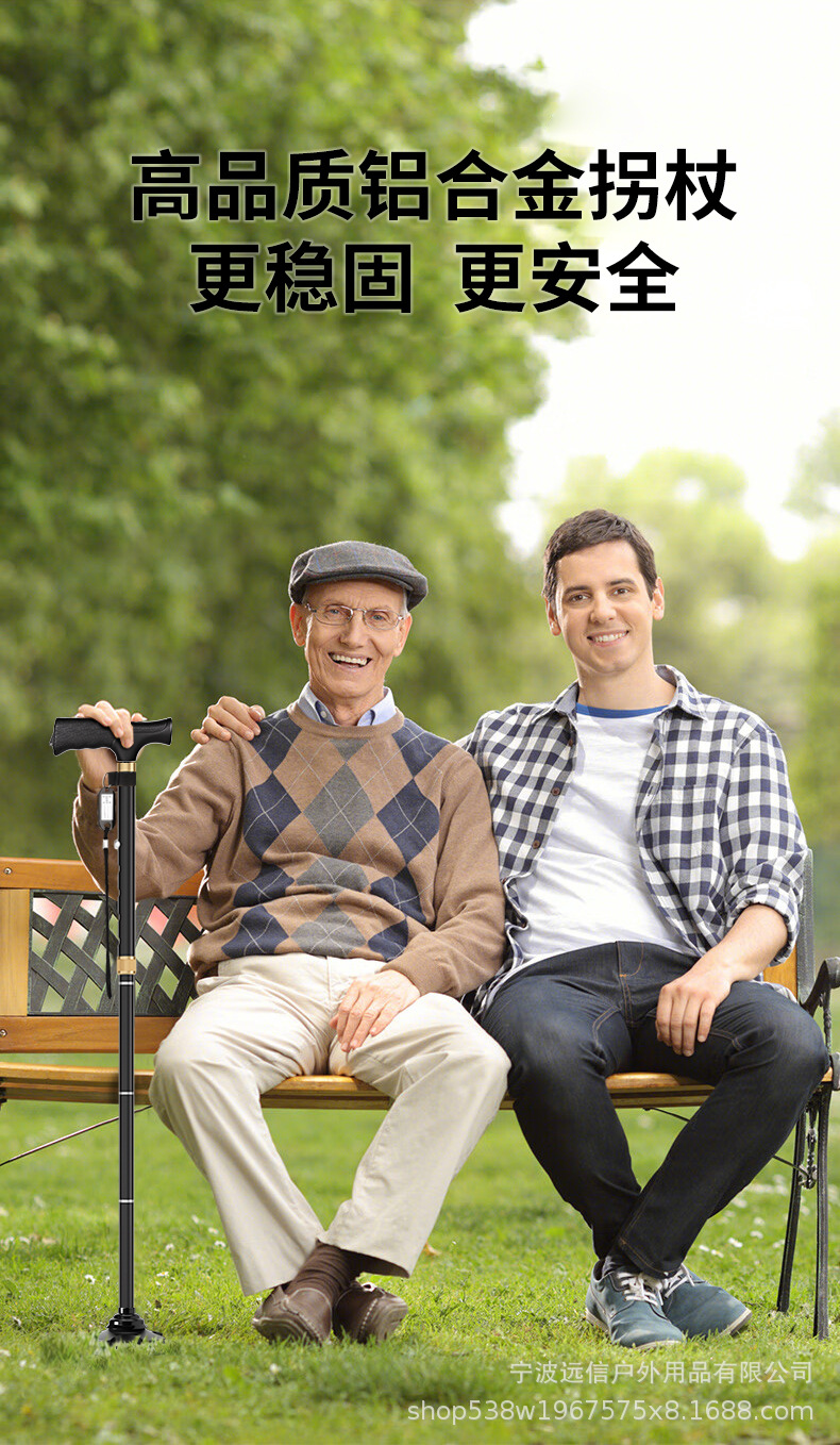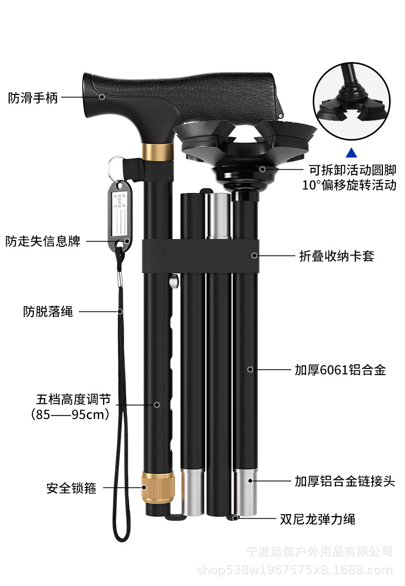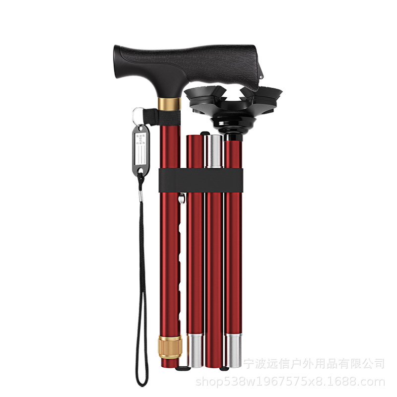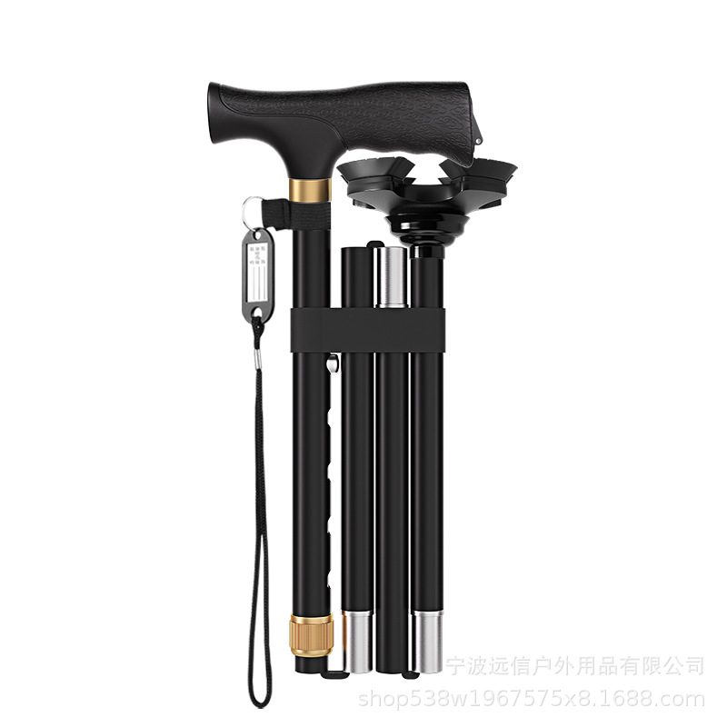 노인을 위한 알루미늄 합금 지팡이, 샹윈 고무 처리된 단일 발 회전 4발 지팡이, 접이식, 텔레스코픽 및 휴대용 도매