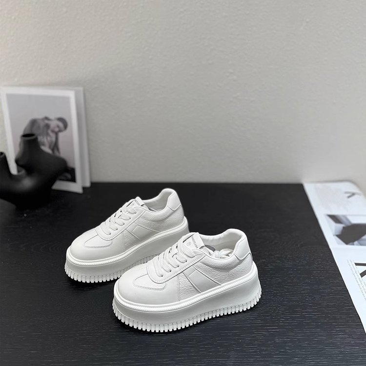 2025 봄 신작 7cm 작은 두꺼운 밑창 정품 가죽 플랫폼 신발 여성 캐주얼 다목적 패션 경량 흰색 신발