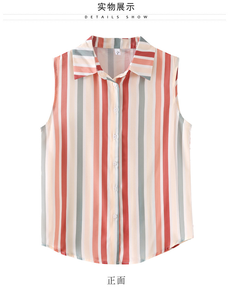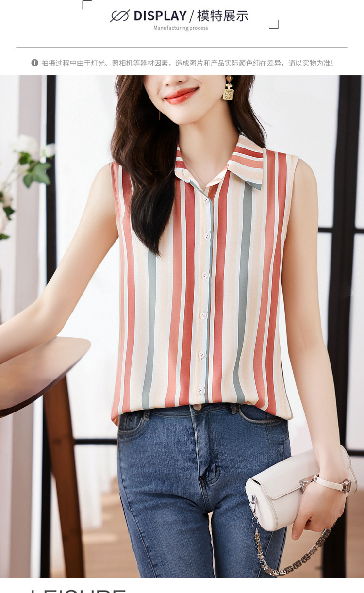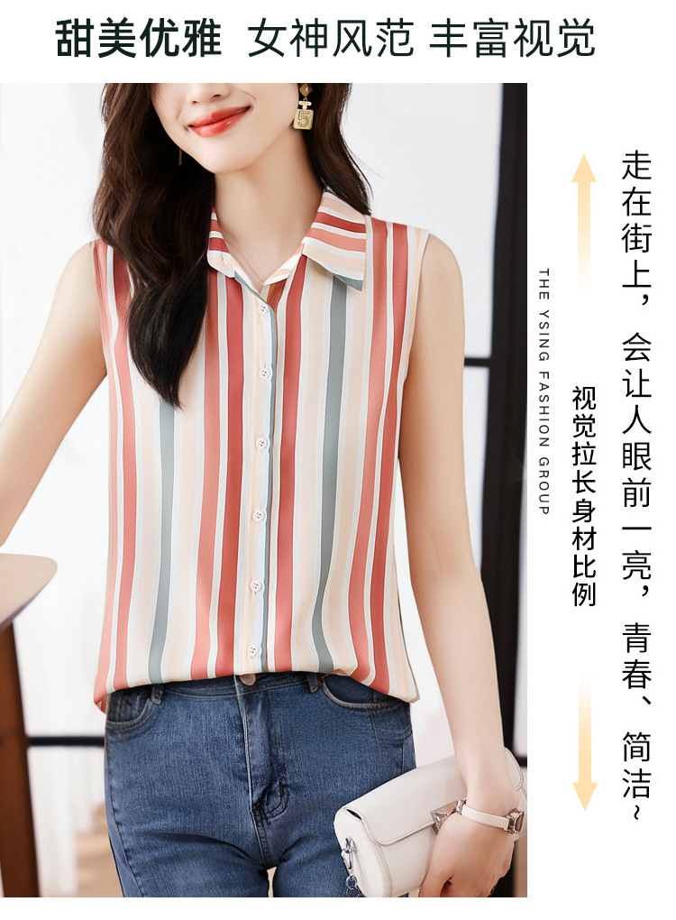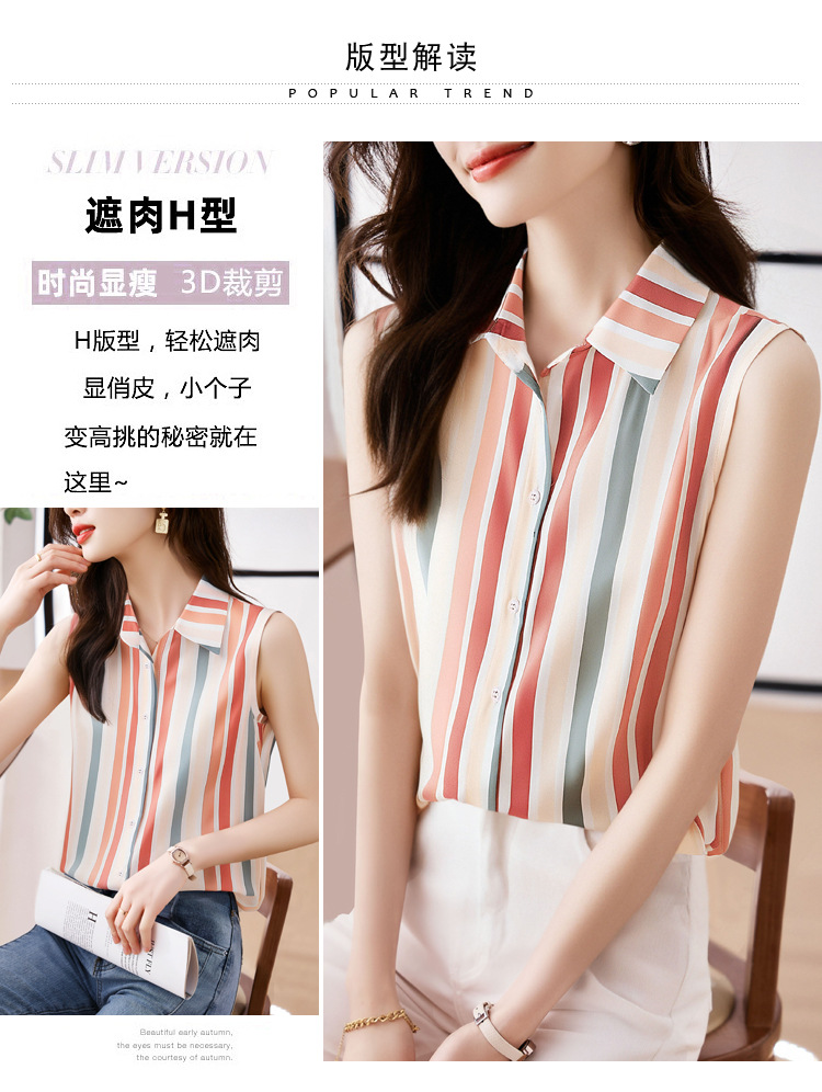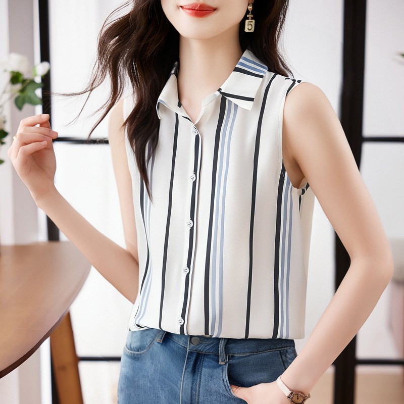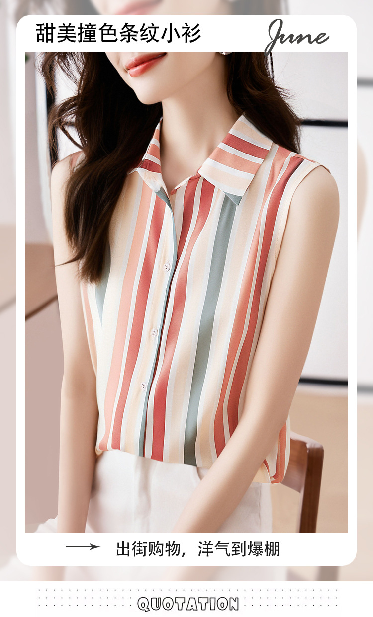 스트라이프 스플리싱 조끼 여성용 크로스보더 2025 신작 아우터 셔츠 민소매 쉬폰 바닥 셔츠 이너 탑스토어 가기