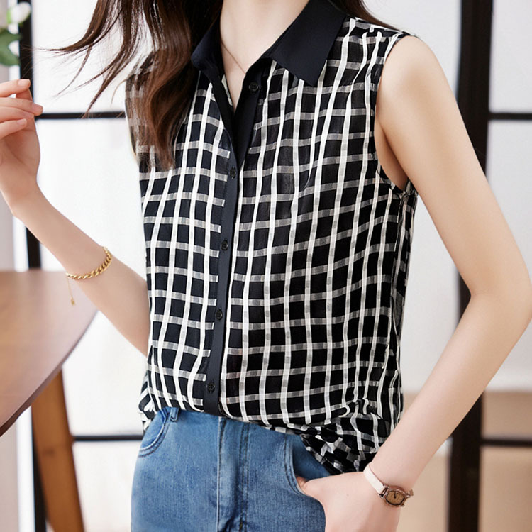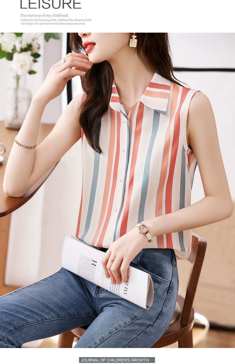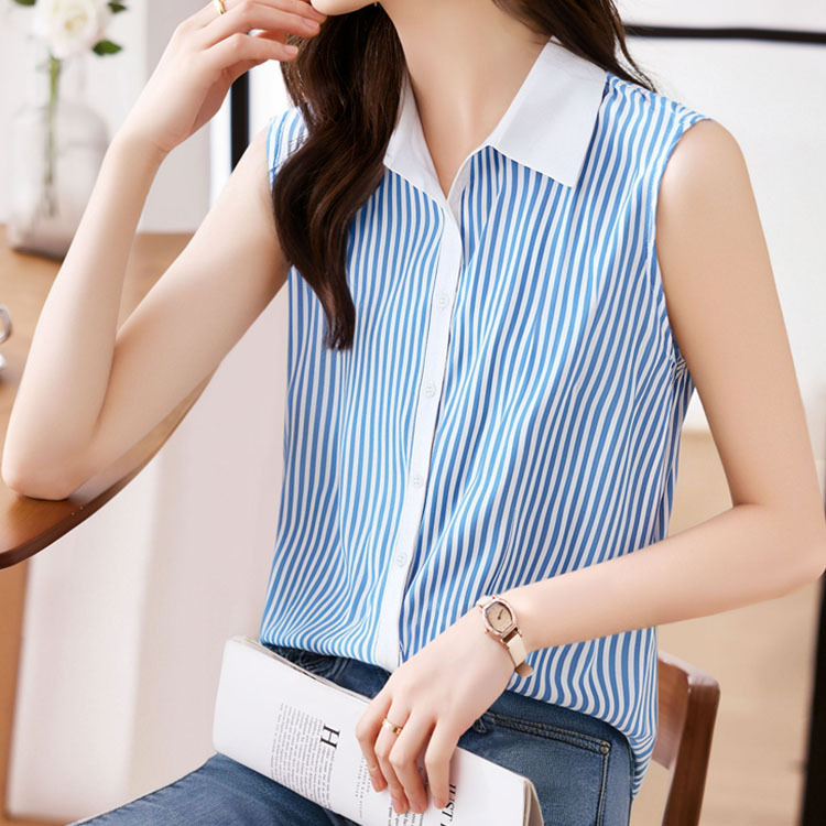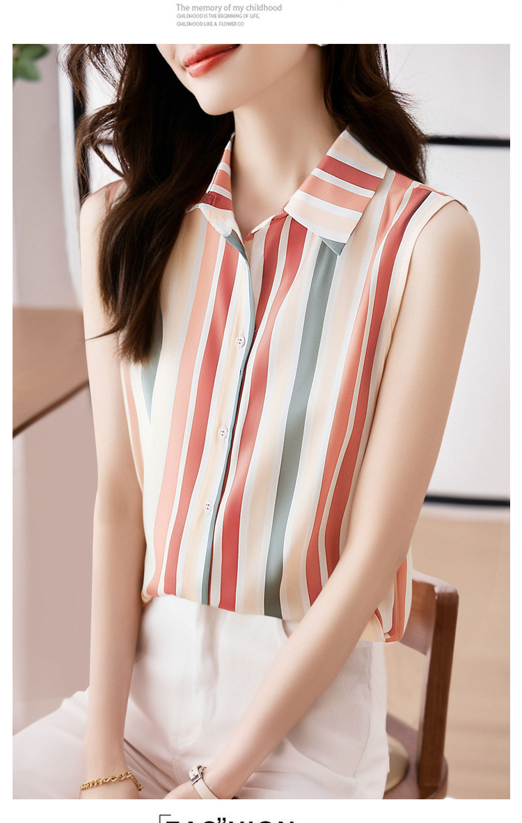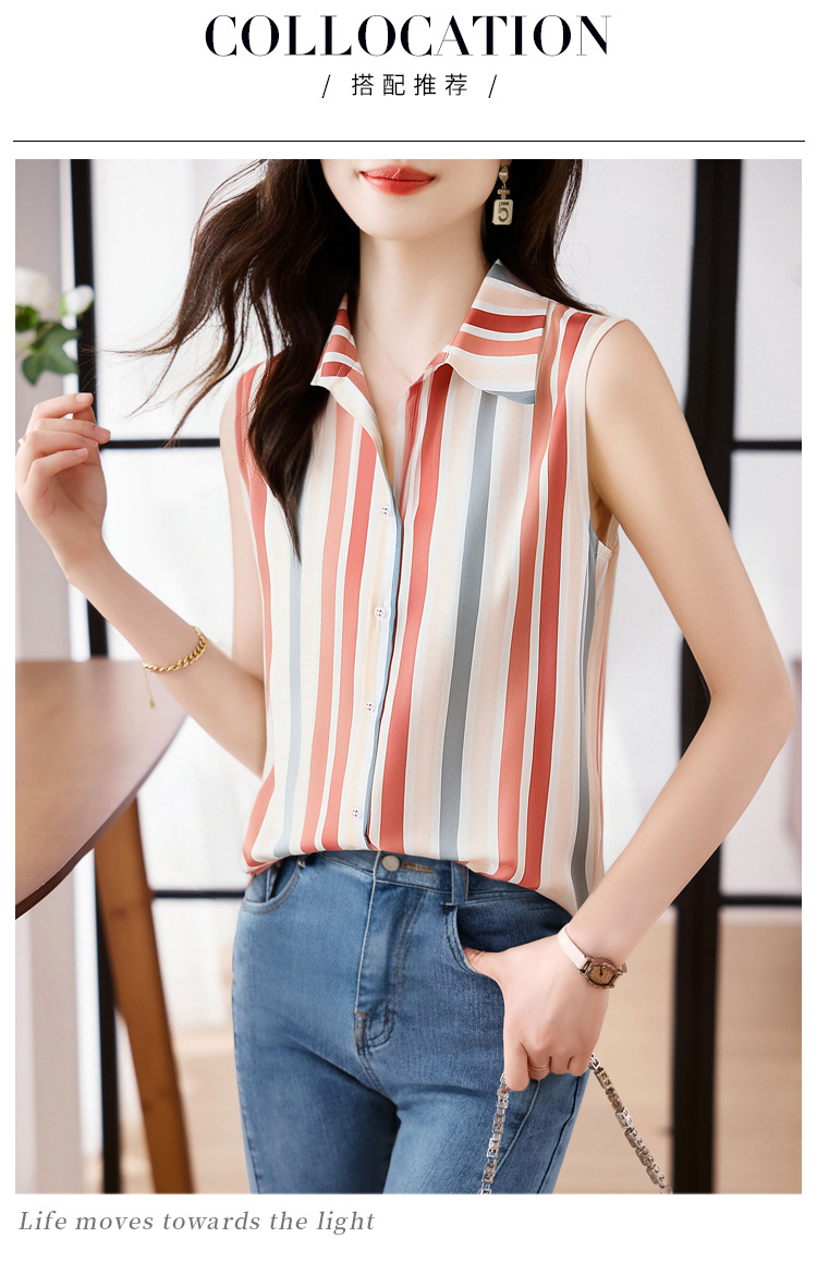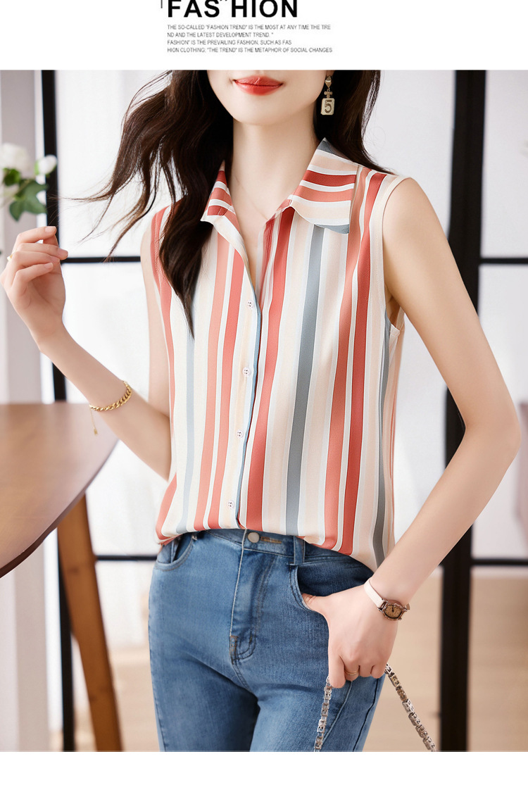 스트라이프 스플리싱 조끼 여성용 크로스보더 2025 신작 아우터 셔츠 민소매 쉬폰 바닥 셔츠 이너 탑스토어 가기