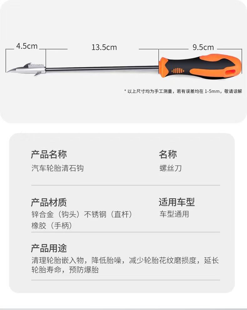 자동차 타이어 스톤 클리닝 후크, 스톤 클리닝 도구, 스톤 제거 스테인레스 스틸 후크, 다기능 타이어 스크레이퍼