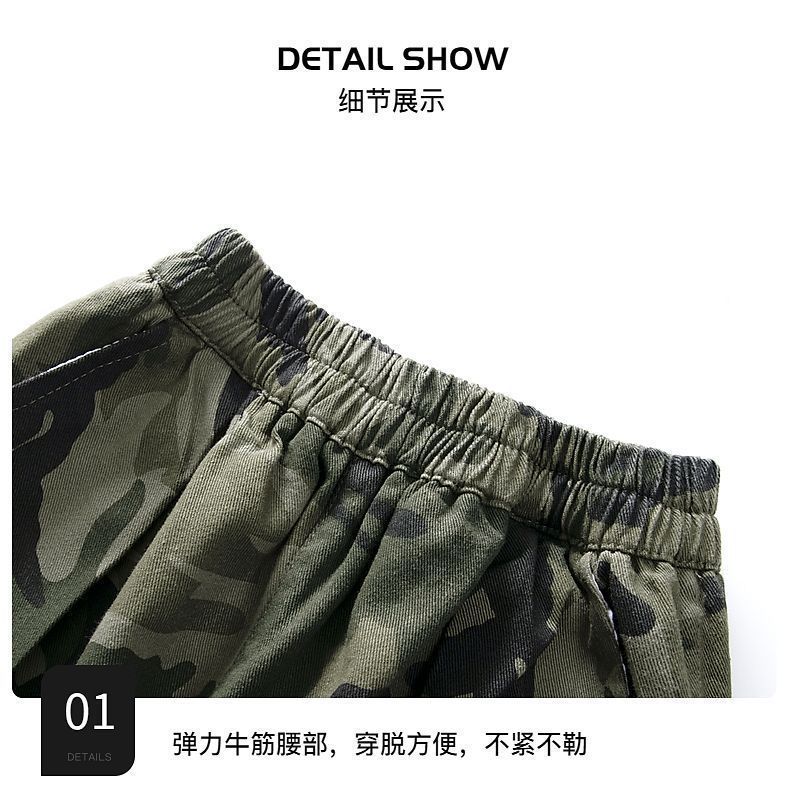 Tongsha 아동복 봄, 가을 소년 작업복 소년 세련되고 잘 생긴 와이드 팬츠 중대형 아동 캐주얼 위장 바지 유행스토어 가기