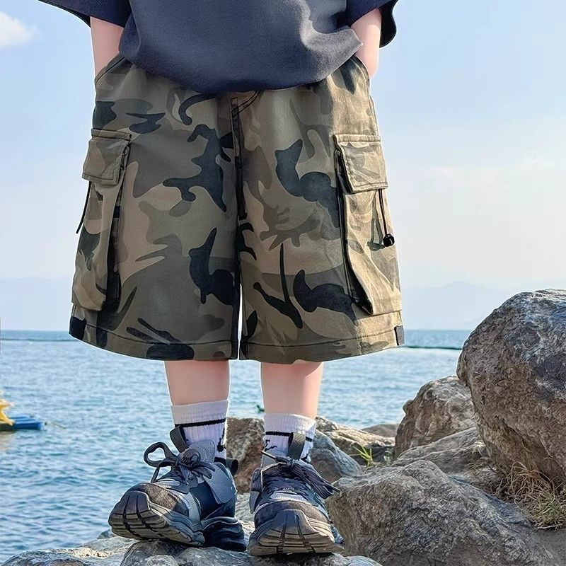Tongsha 아동복 봄, 가을 소년 작업복 소년 세련되고 잘 생긴 와이드 팬츠 중대형 아동 캐주얼 위장 바지 유행