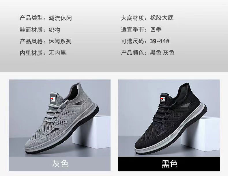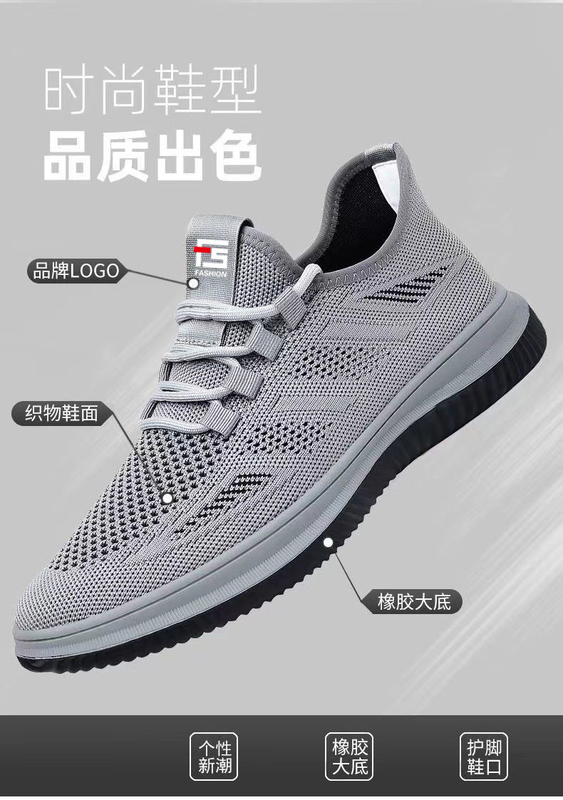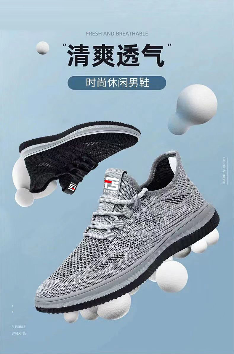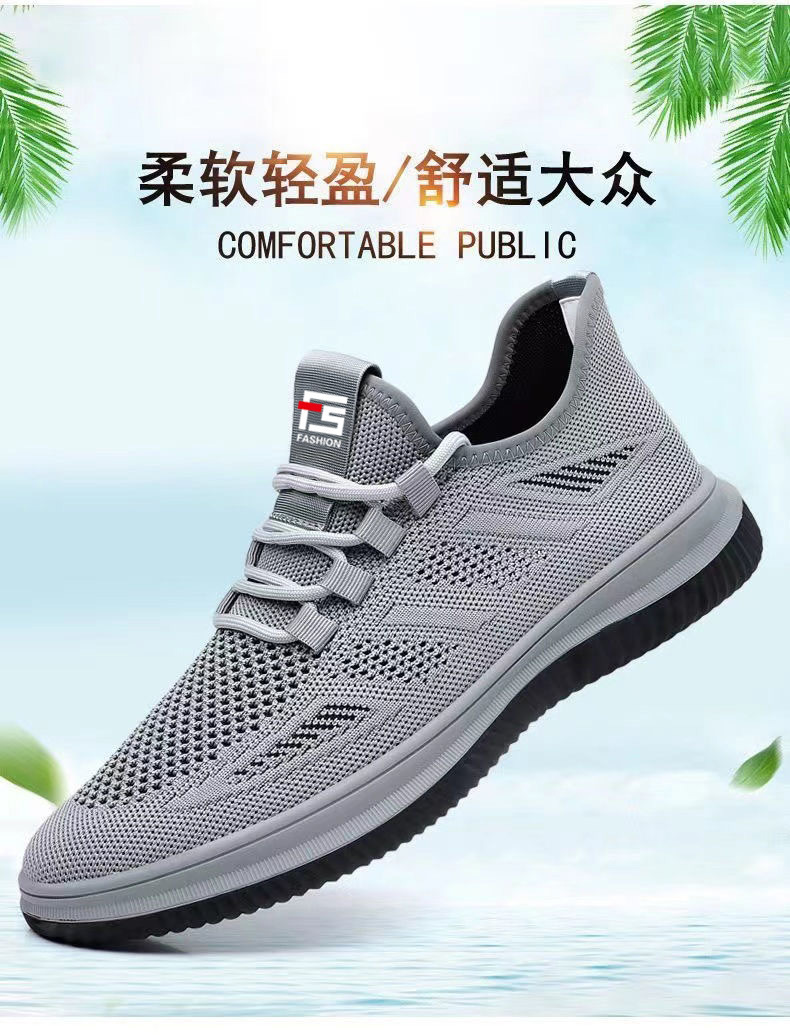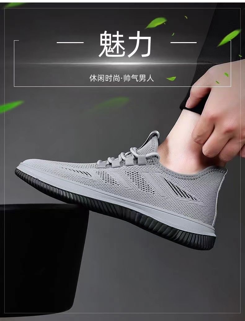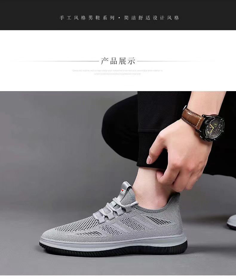 도매 국경 간 운동화 둥근 발가락 부드러운 바닥 메쉬 플라이 짠 검은 작업 신발 가볍고 편안한 통기성 캐주얼 남성 신발스토어 가기