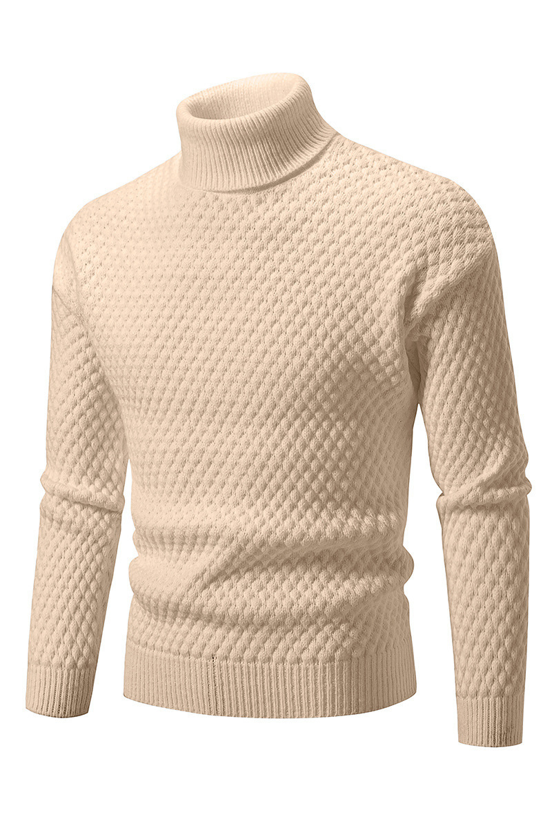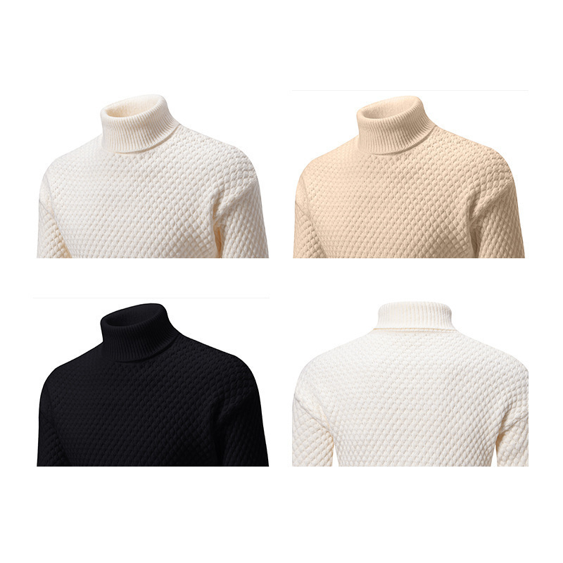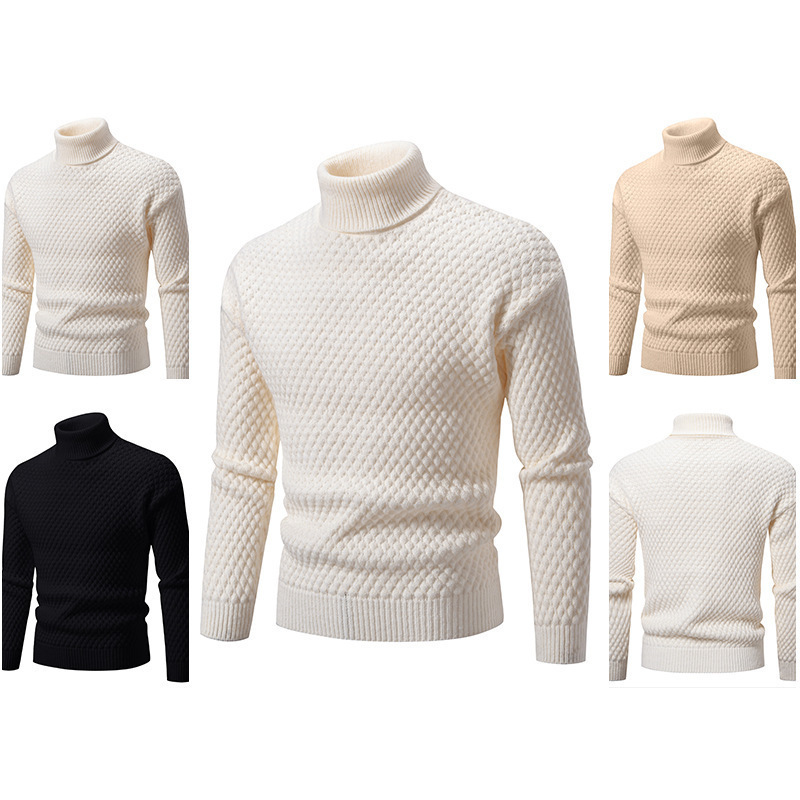 外贸2024秋冬新款毛衣男士高领菠萝格套头针织衫大码时尚休闲毛衣