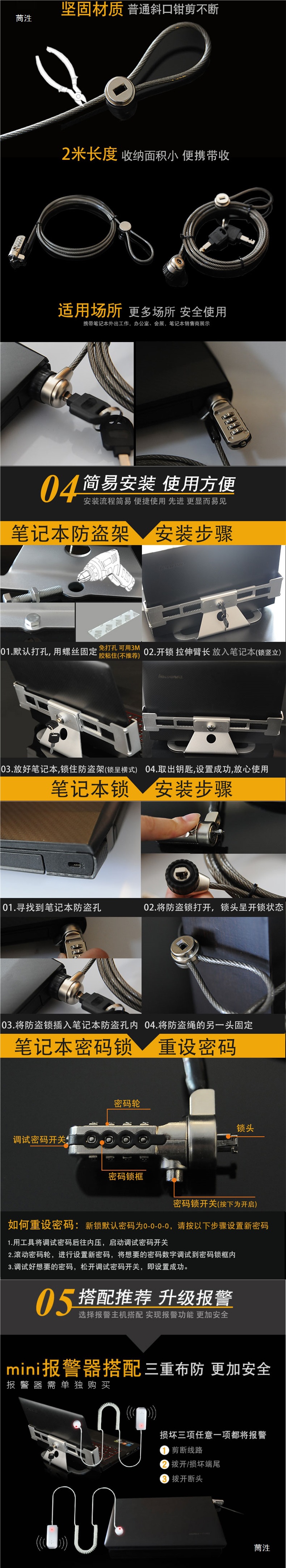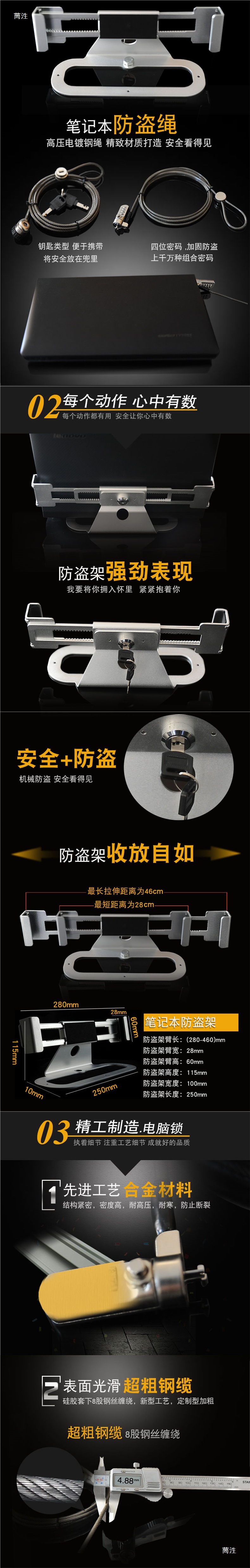 노트북 금속 스탠드 매장 침실 컴퓨터 잠금 장치 다기능 기계식 USB 소켓 도난 방지 체인 로프스토어 가기