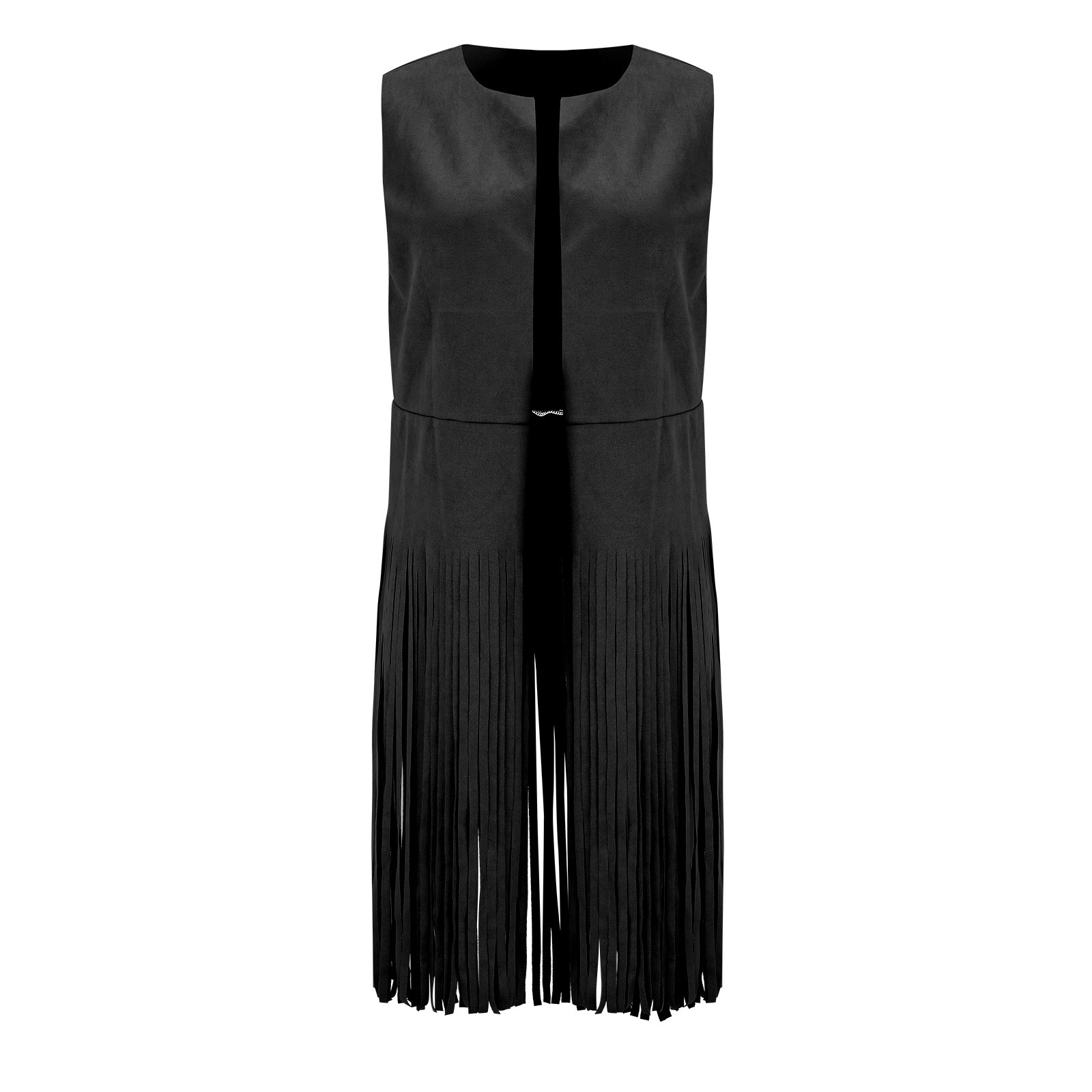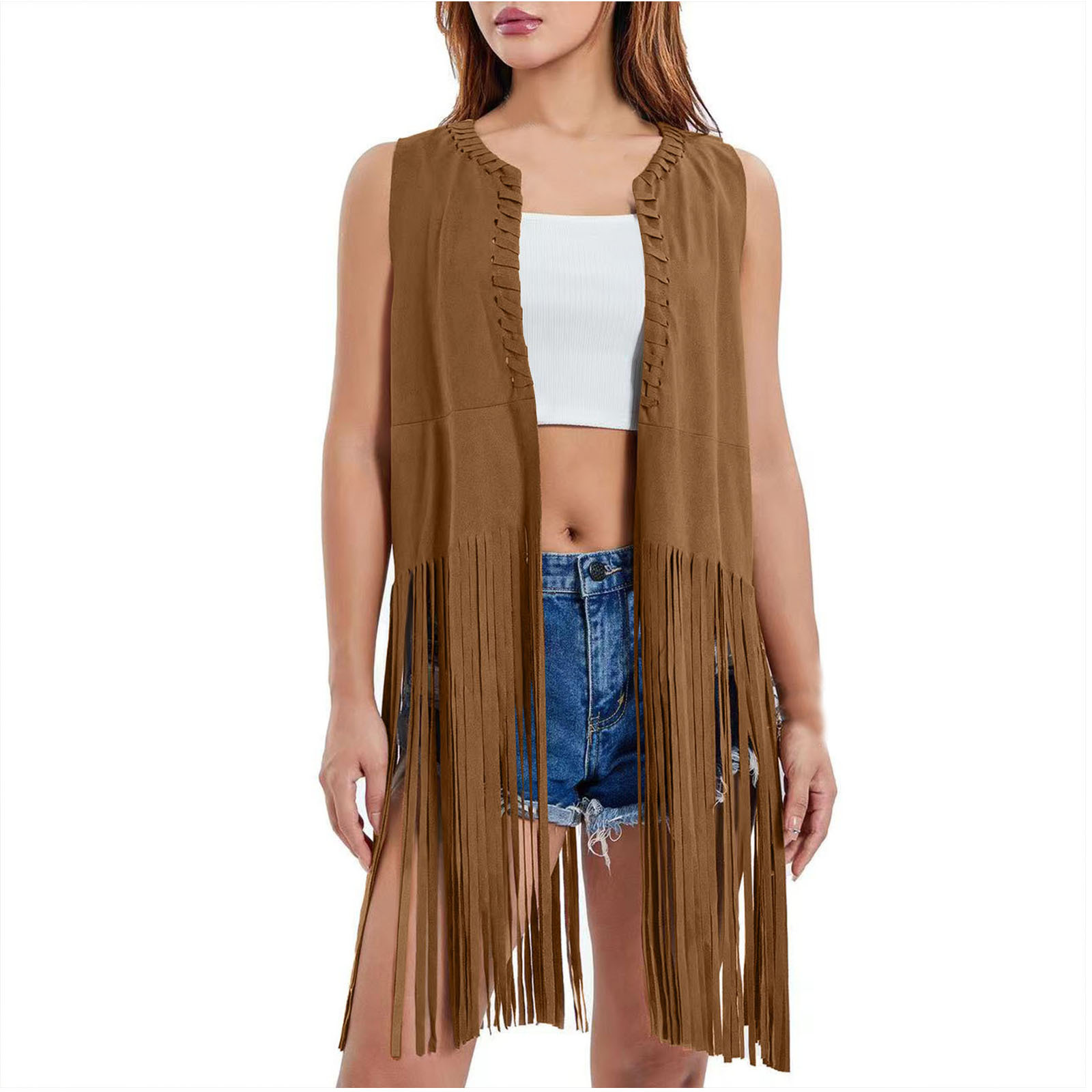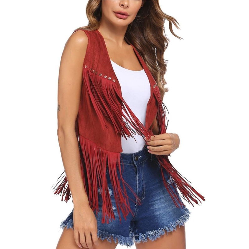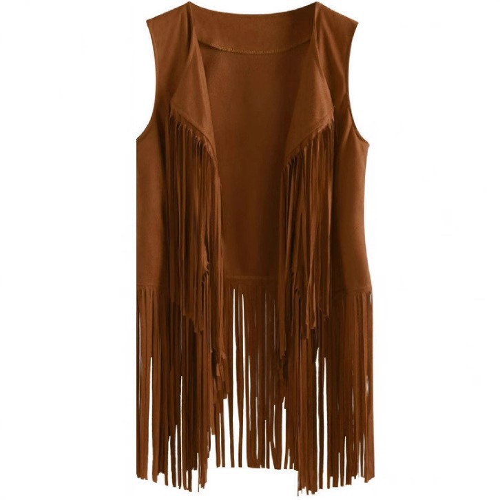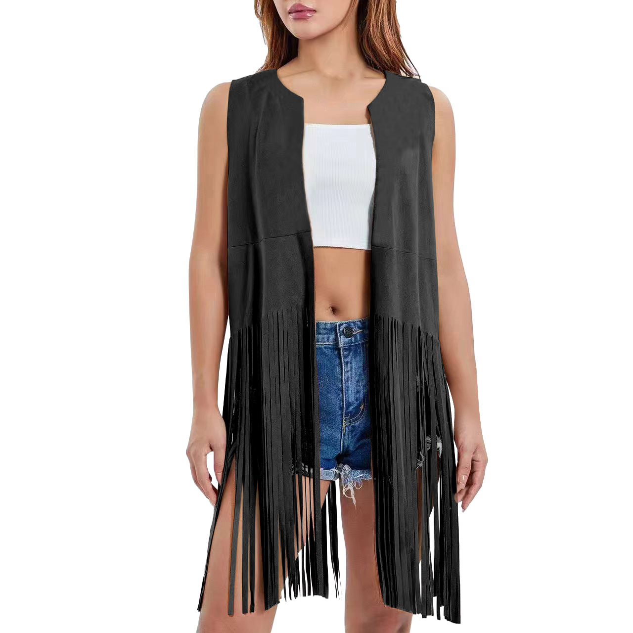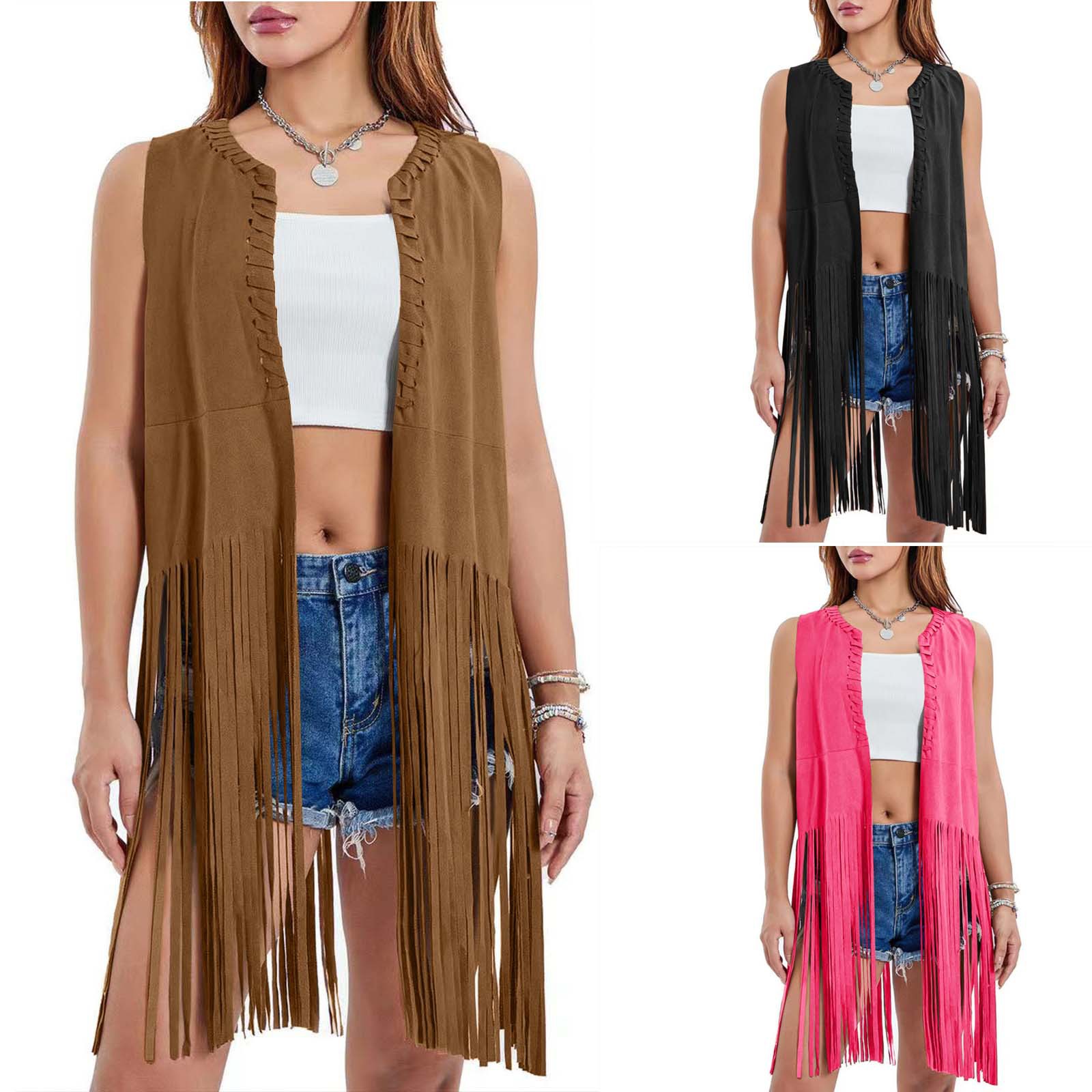 2026 여성 유럽 및 미국 스타일 신상 스웨이드 프린지 조끼 재킷, 인기 민소매 중간 길이 조끼 아우터스토어 가기