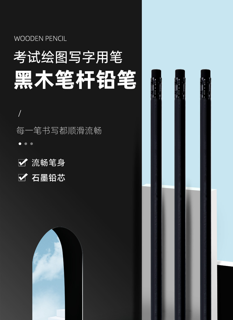 검은 나무 둥근 막대 연필 맞춤형 로고 및 하드 1급 포플러 검은 나무 광고 펜 어린이와 학생 쓰기 HB 연필스토어 가기
