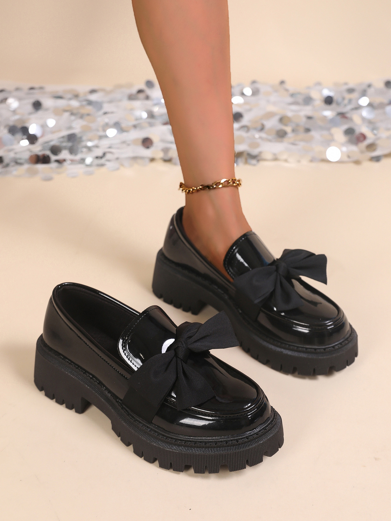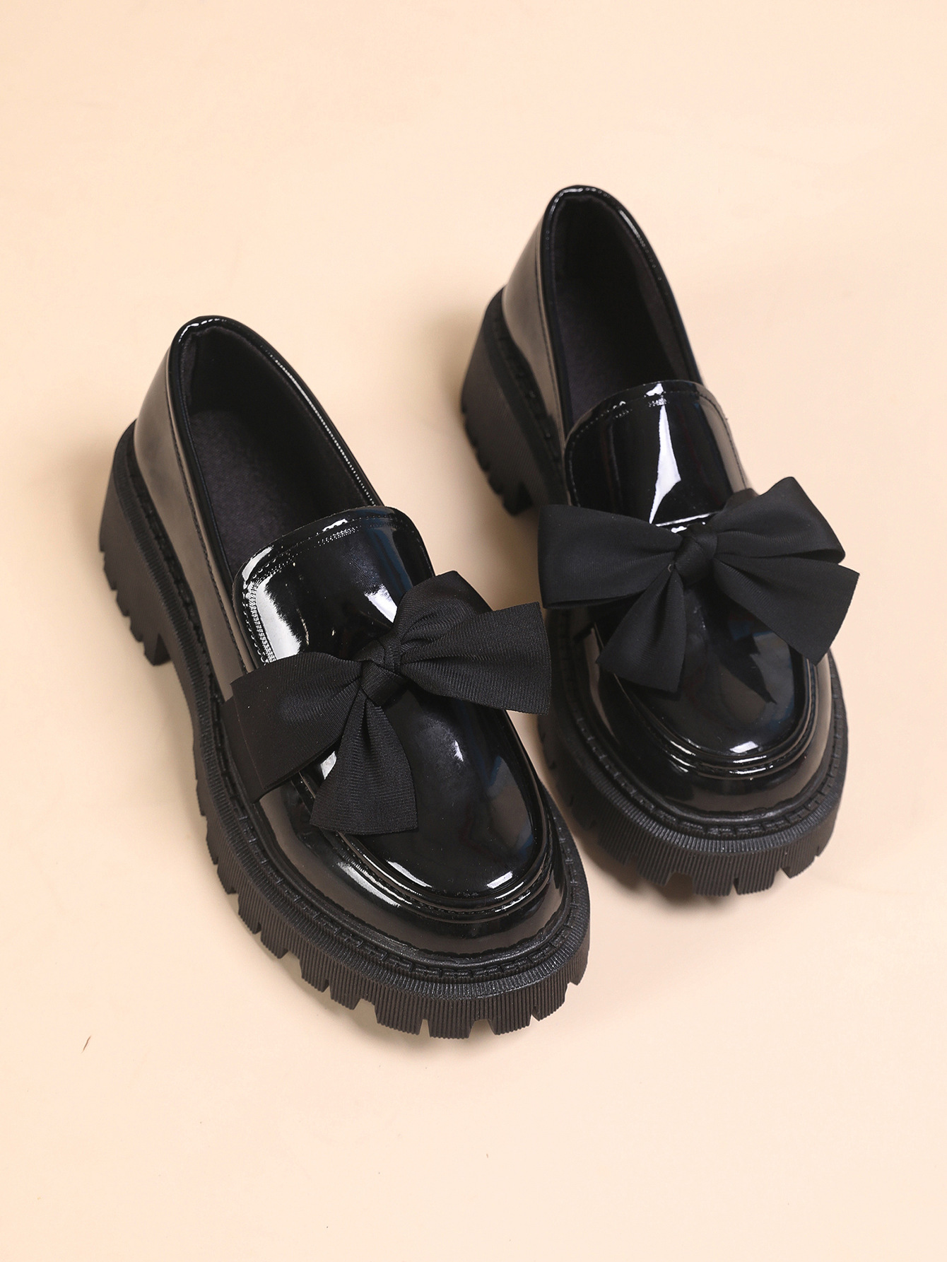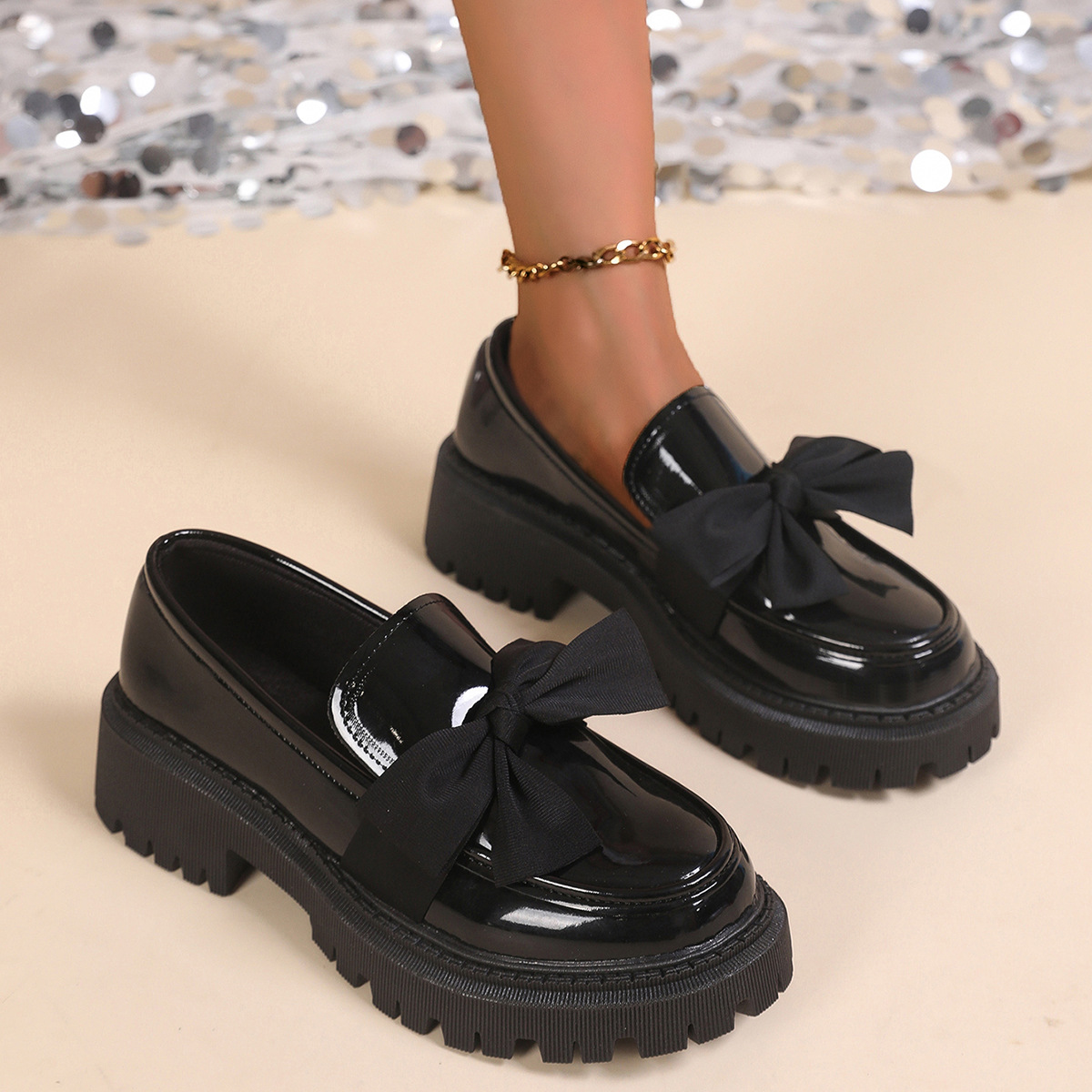 여성을위한 영국 스타일 복고풍 로퍼 2025 대외 무역 한국어 버전 두꺼운 밑창 크로스 보더 보우 라운드 발가락 두꺼운 굽 여성용 작은 가죽 신발