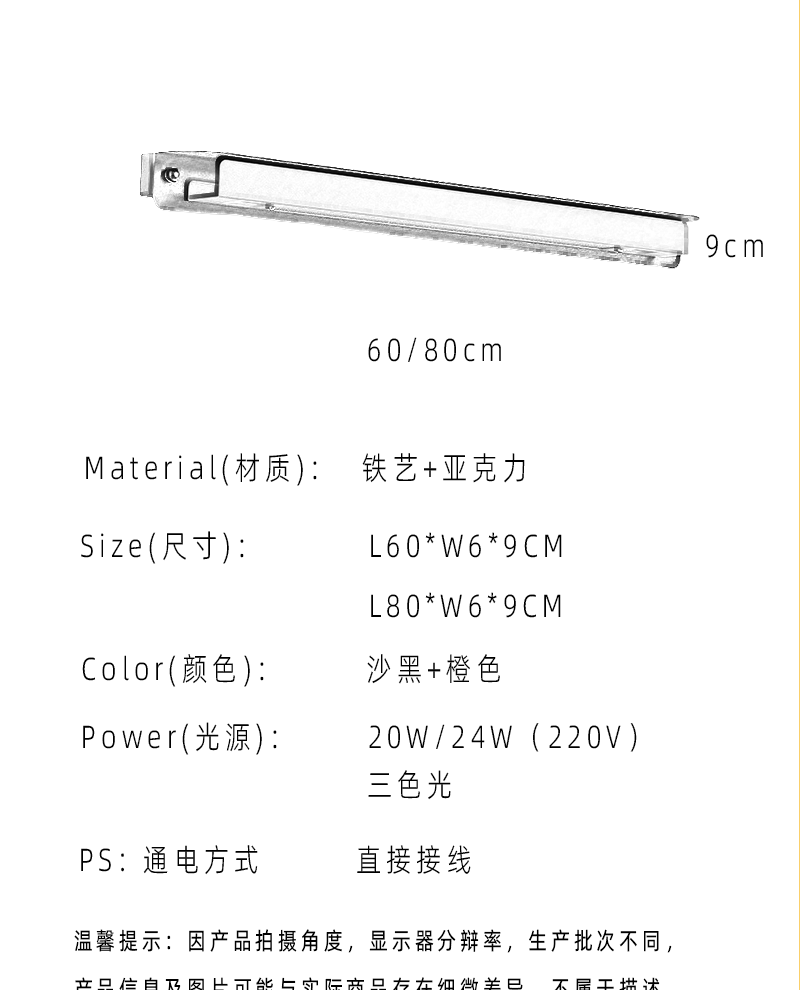 • 12W 레트로 오렌지 + 블랙 둥근 모서리(60cm 실 남김) 따뜻한 조명(밝기 조절 가능)