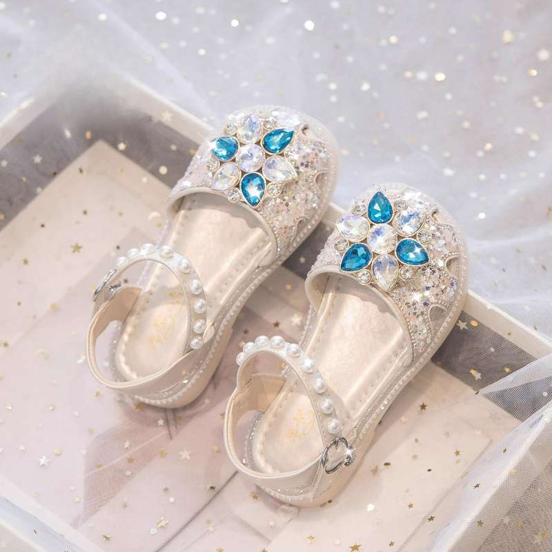여자 샌들 2025 새로운 여름 스타일 어린이 공주 신발 여자 라인 석 발가락 부드러운 바닥 크리스탈 신발 여름스토어 가기