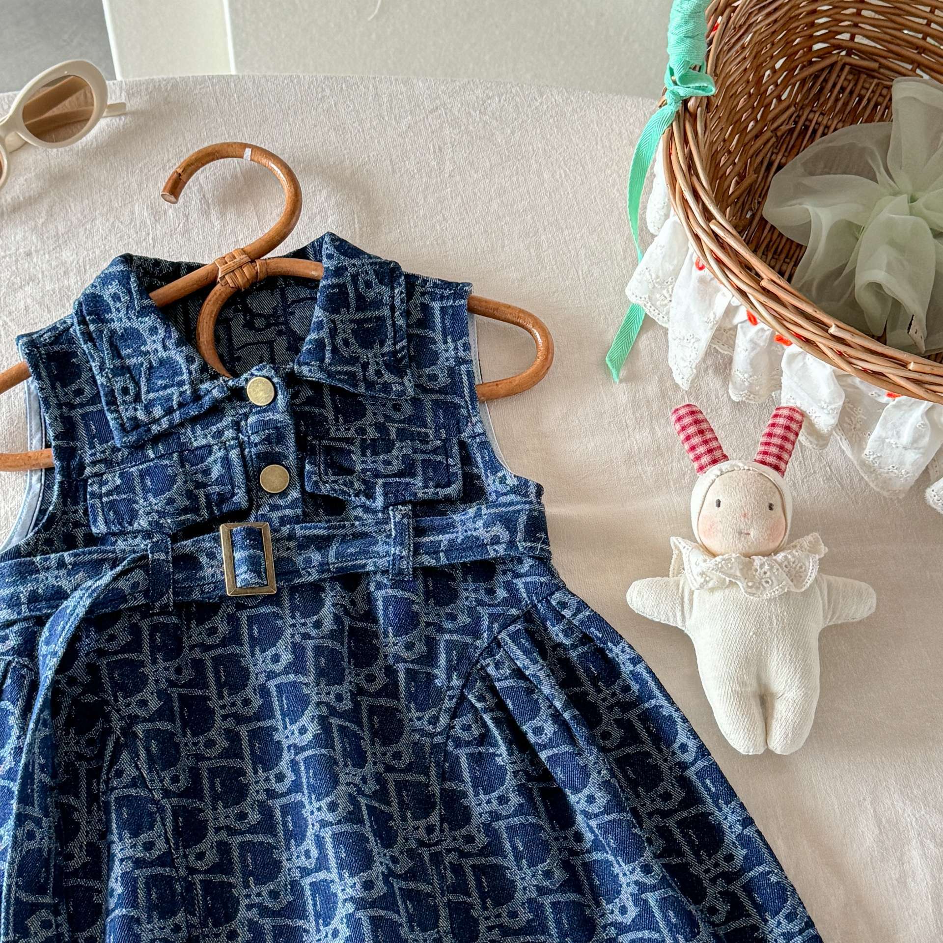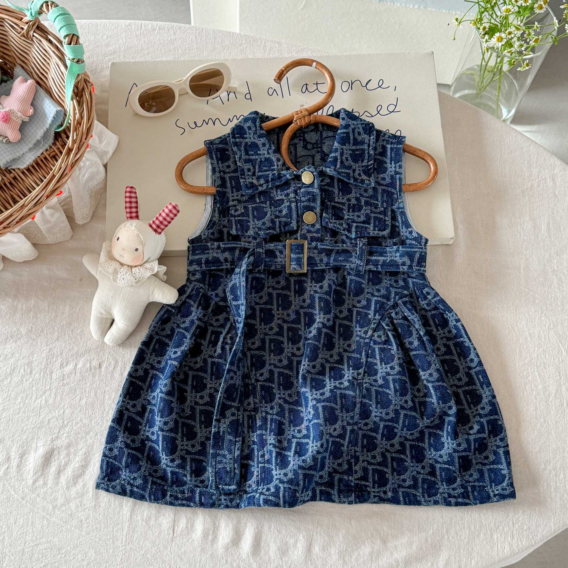 여자 한국 드레스 여름 새 여자 민소매 복고풍 데님 드레스 아기 조끼 드레스 탑