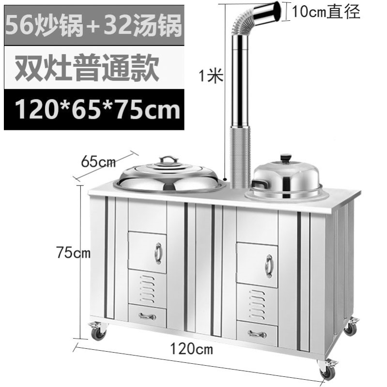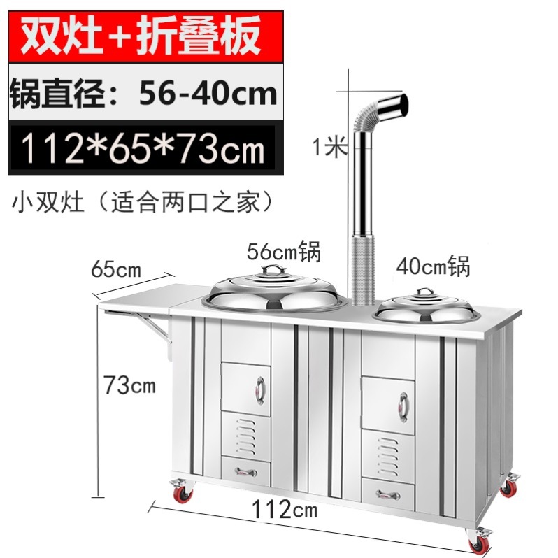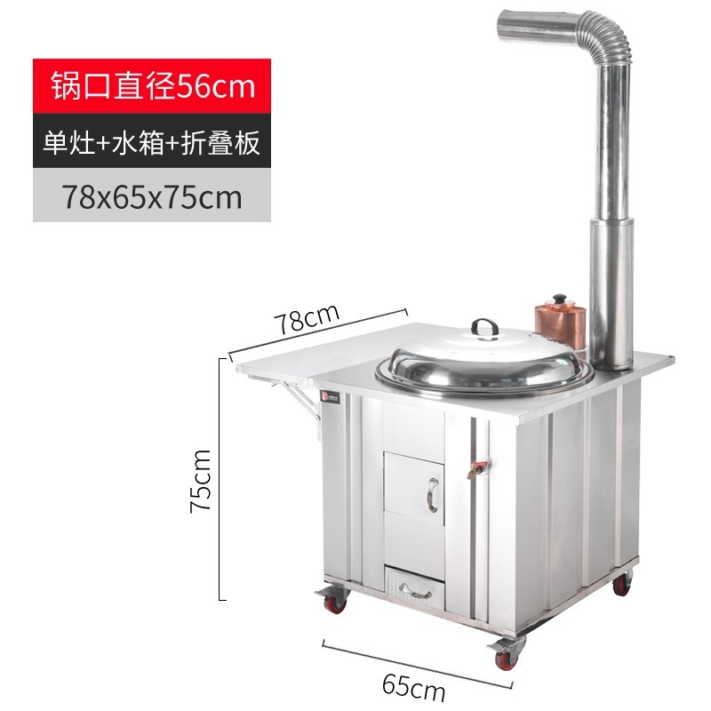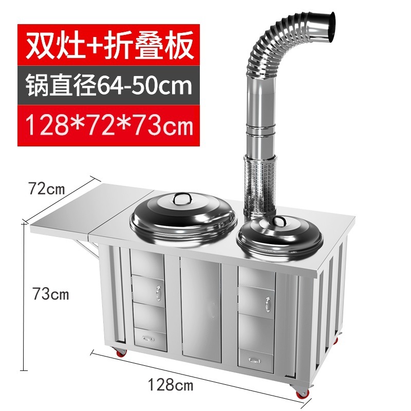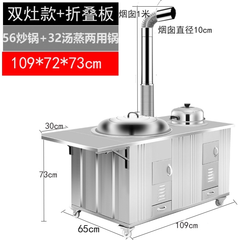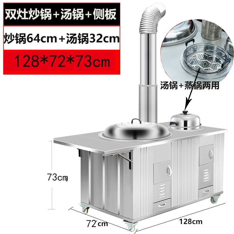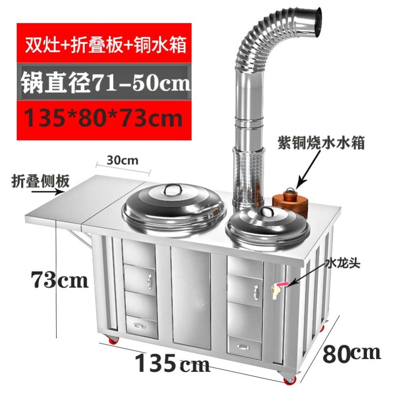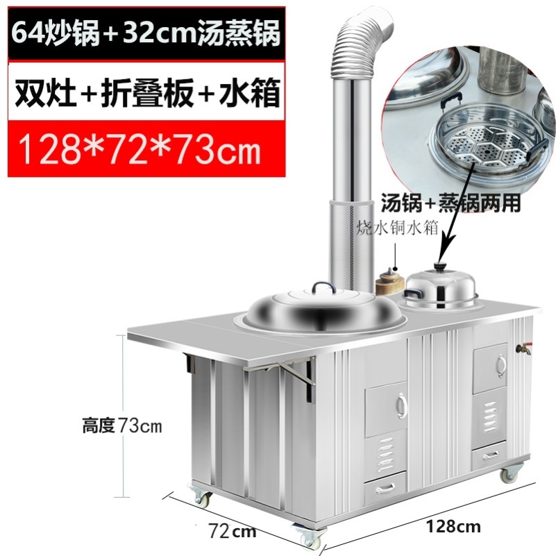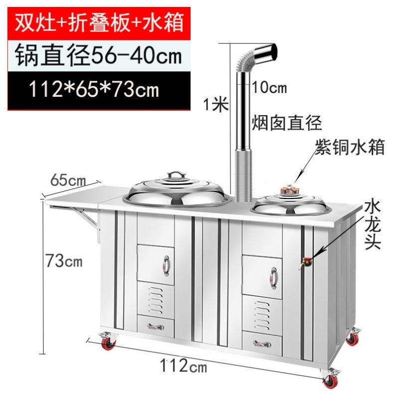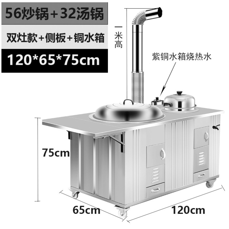 • 더블 스토브: 두꺼운 64cm 웍 + 32cm 수프 냄비 + 측면 패널 + 대형 물 탱크 굴뚝 모델