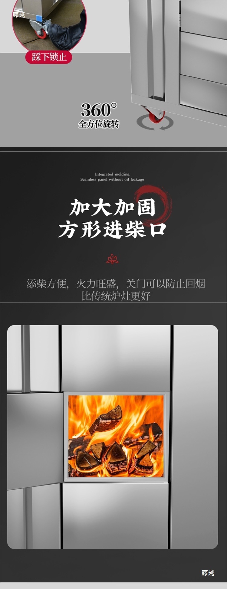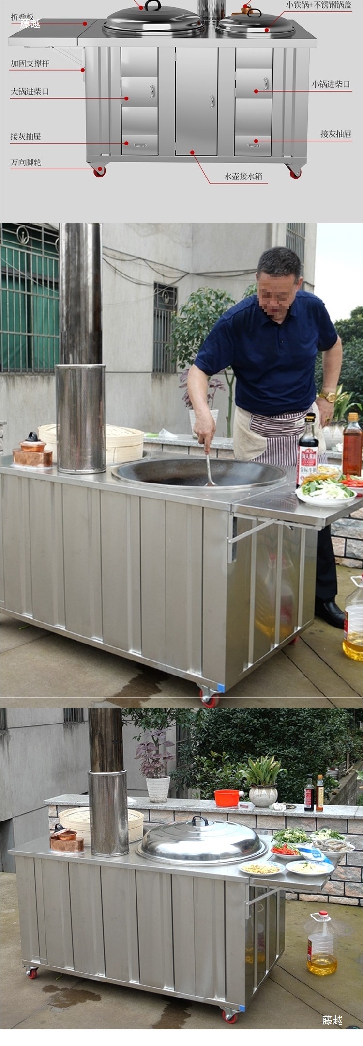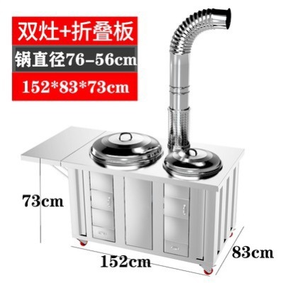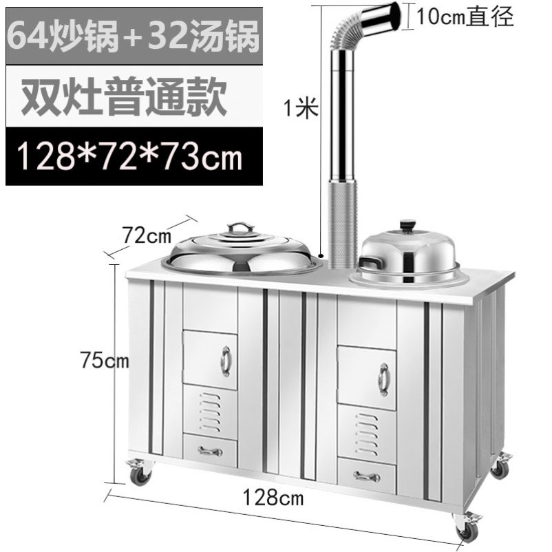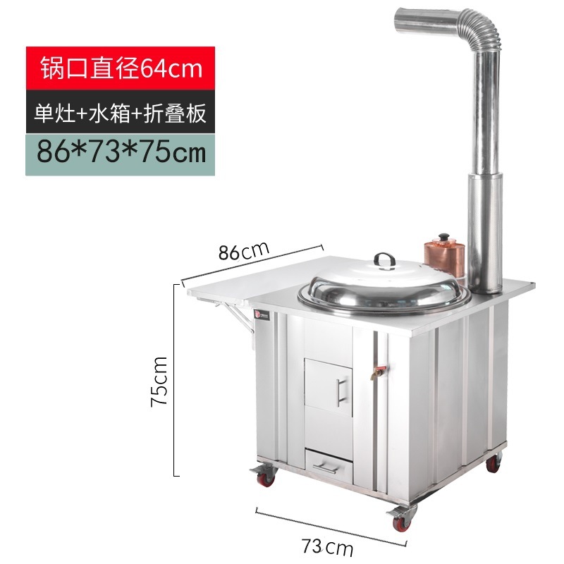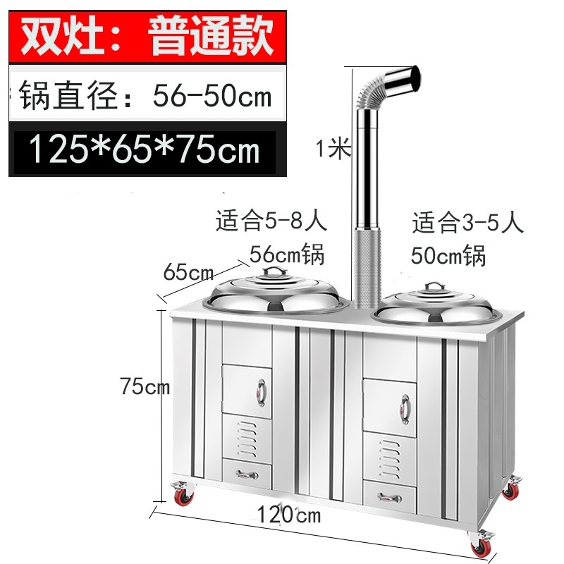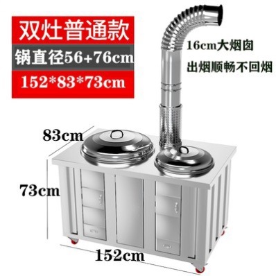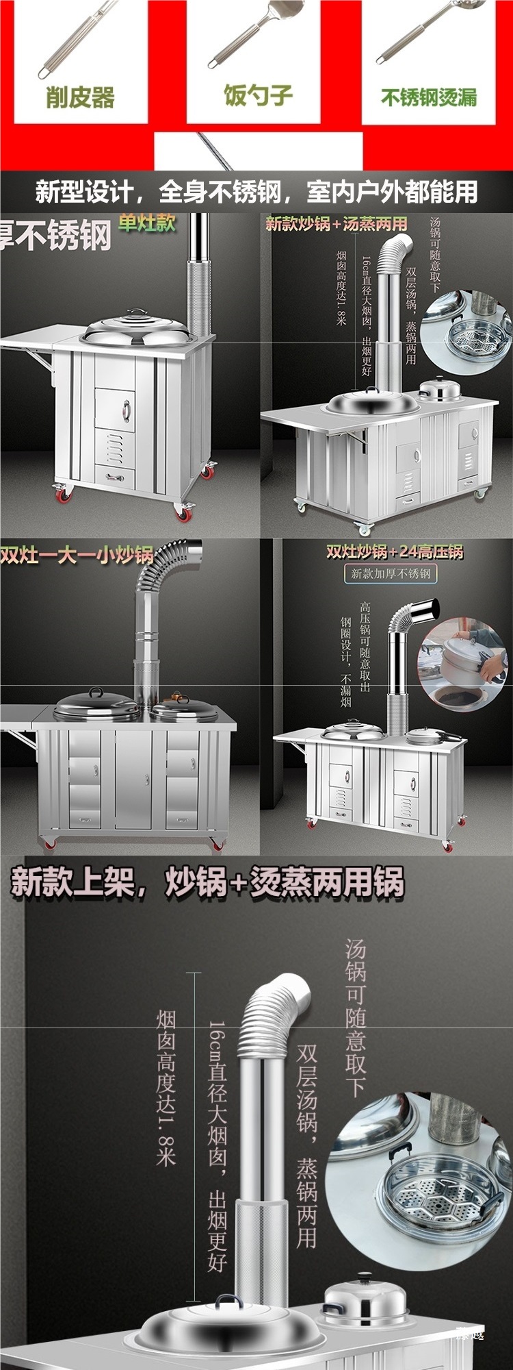 • 더블 스토브: 두꺼운 64cm 웍 + 32cm 수프 냄비 + 측면 패널 + 대형 물 탱크 굴뚝 모델