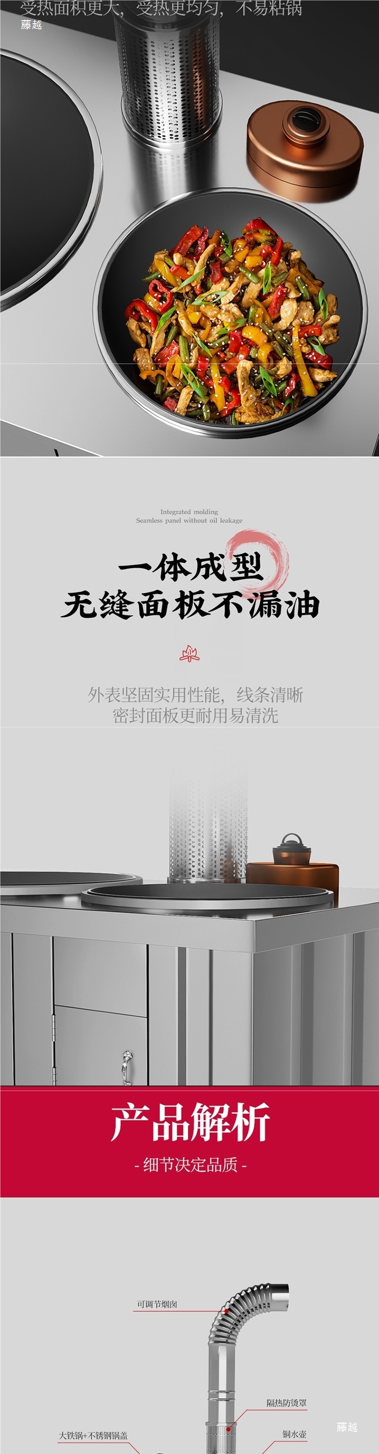 • 더블 스토브: 두꺼운 64cm 웍 + 32cm 수프 냄비, 일반 대형 굴뚝 모델