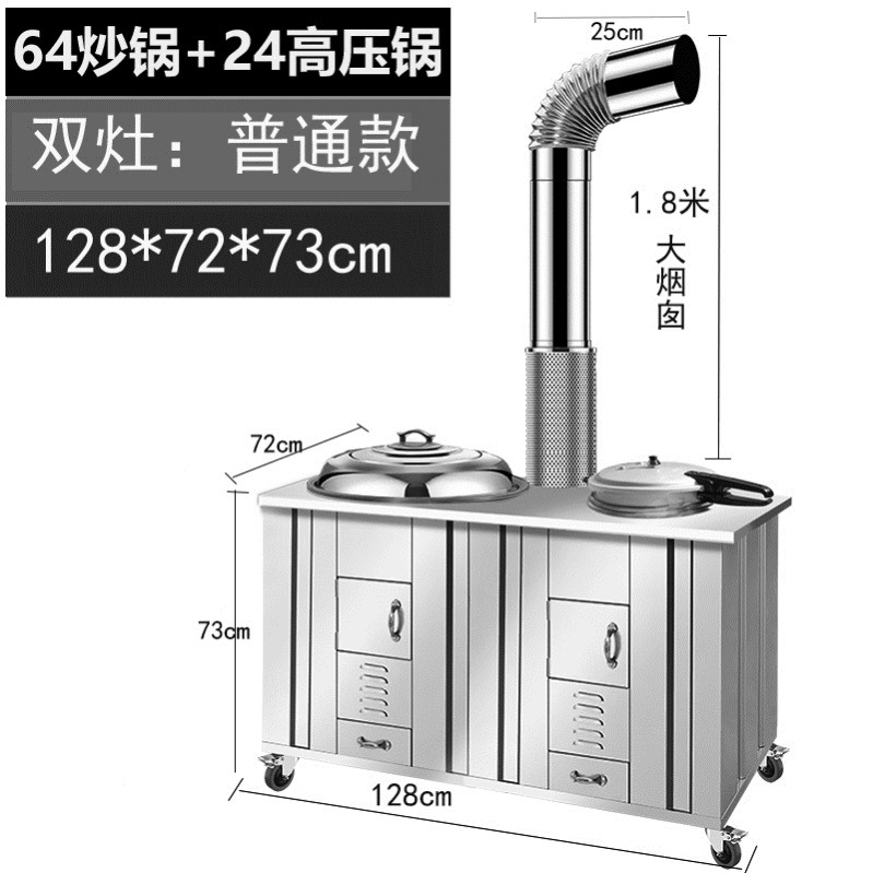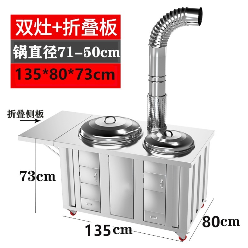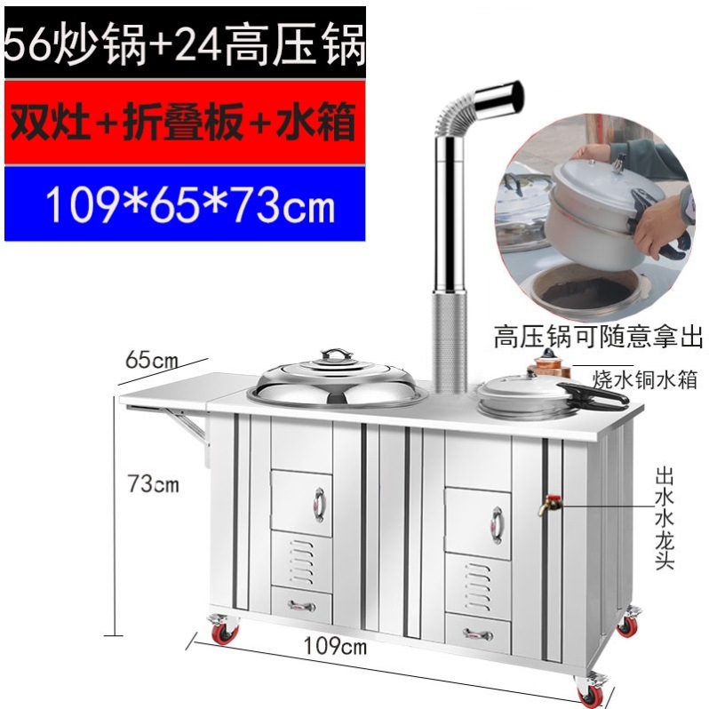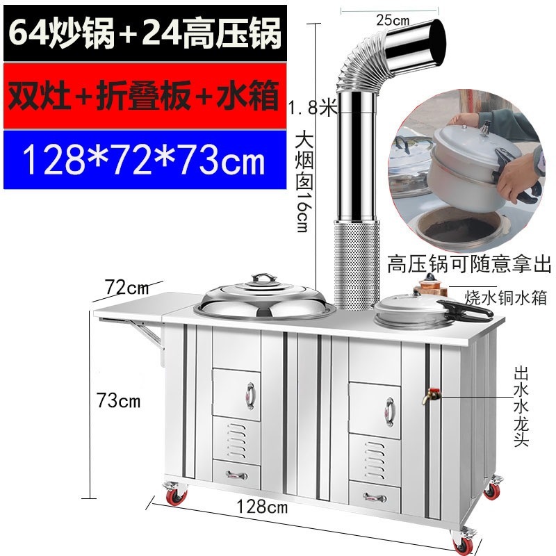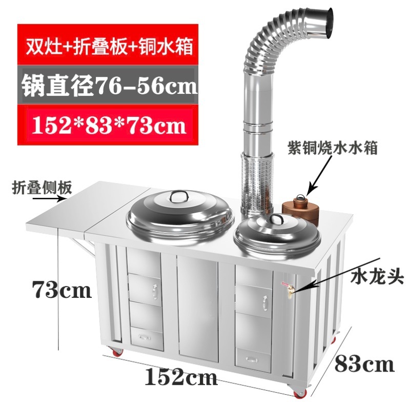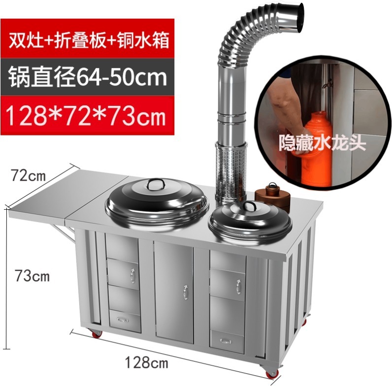• 더블 스토브: 두꺼운 64cm 웍 + 24cm 압력솥 + 측면 패널 + 대형 물탱크 굴뚝 모델