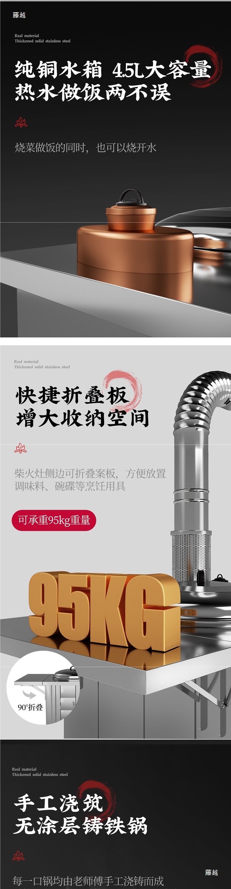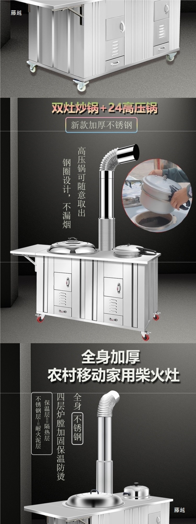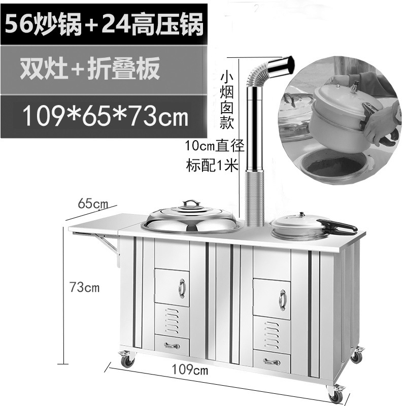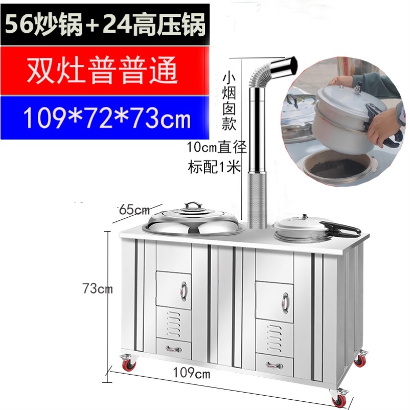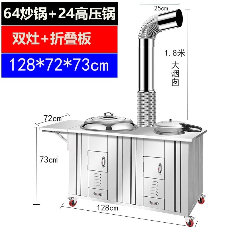 • 더블 스토브: 두꺼운 64cm 웍 + 24cm 압력솥 + 측면 패널 + 대형 물탱크 굴뚝 모델